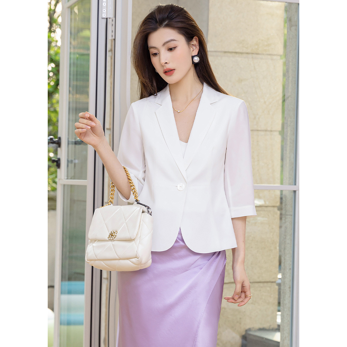| nameOriginal | Endy/Acetic Acid Small Suit Jacket Women's 2023 Spring and Summer Thin Seven-point Sleeve White High-end Fashion Suit |