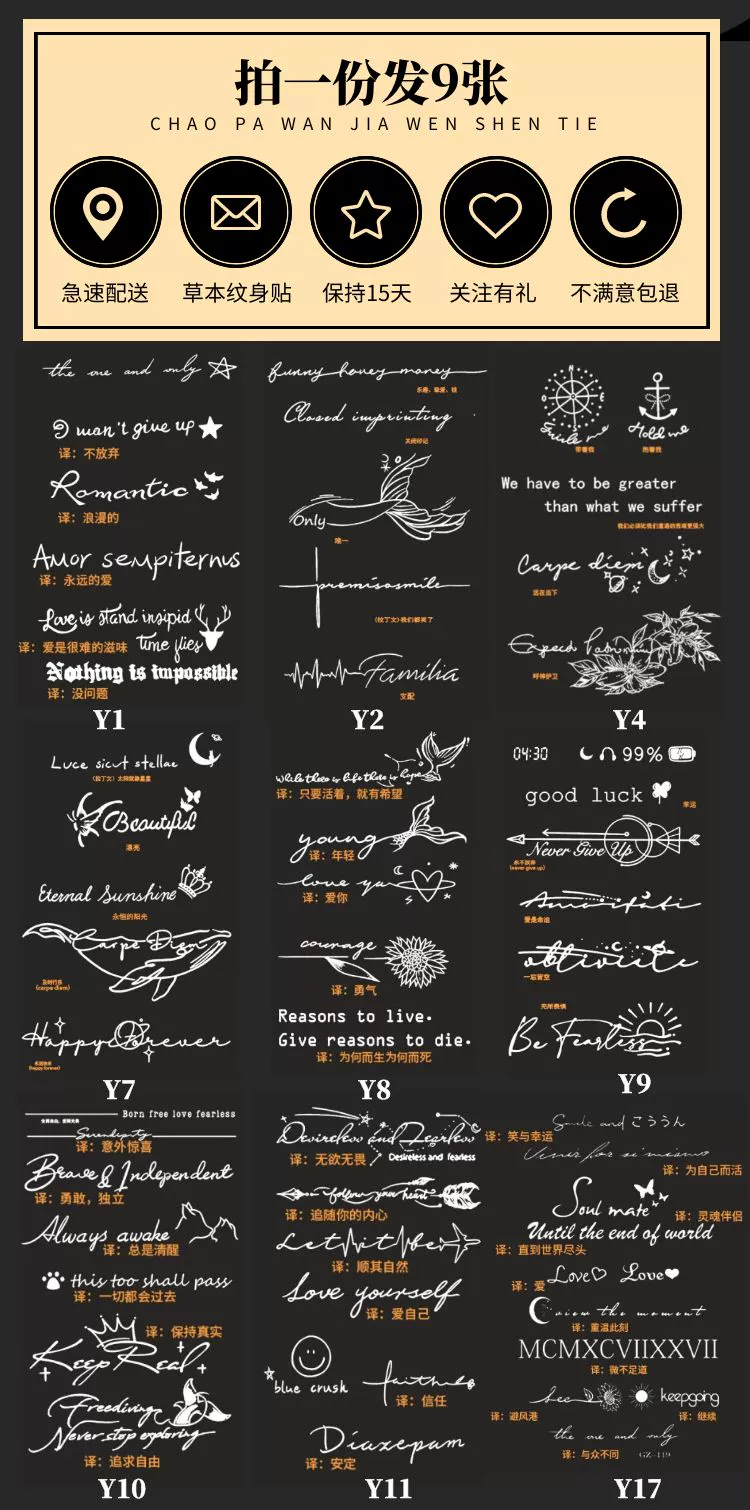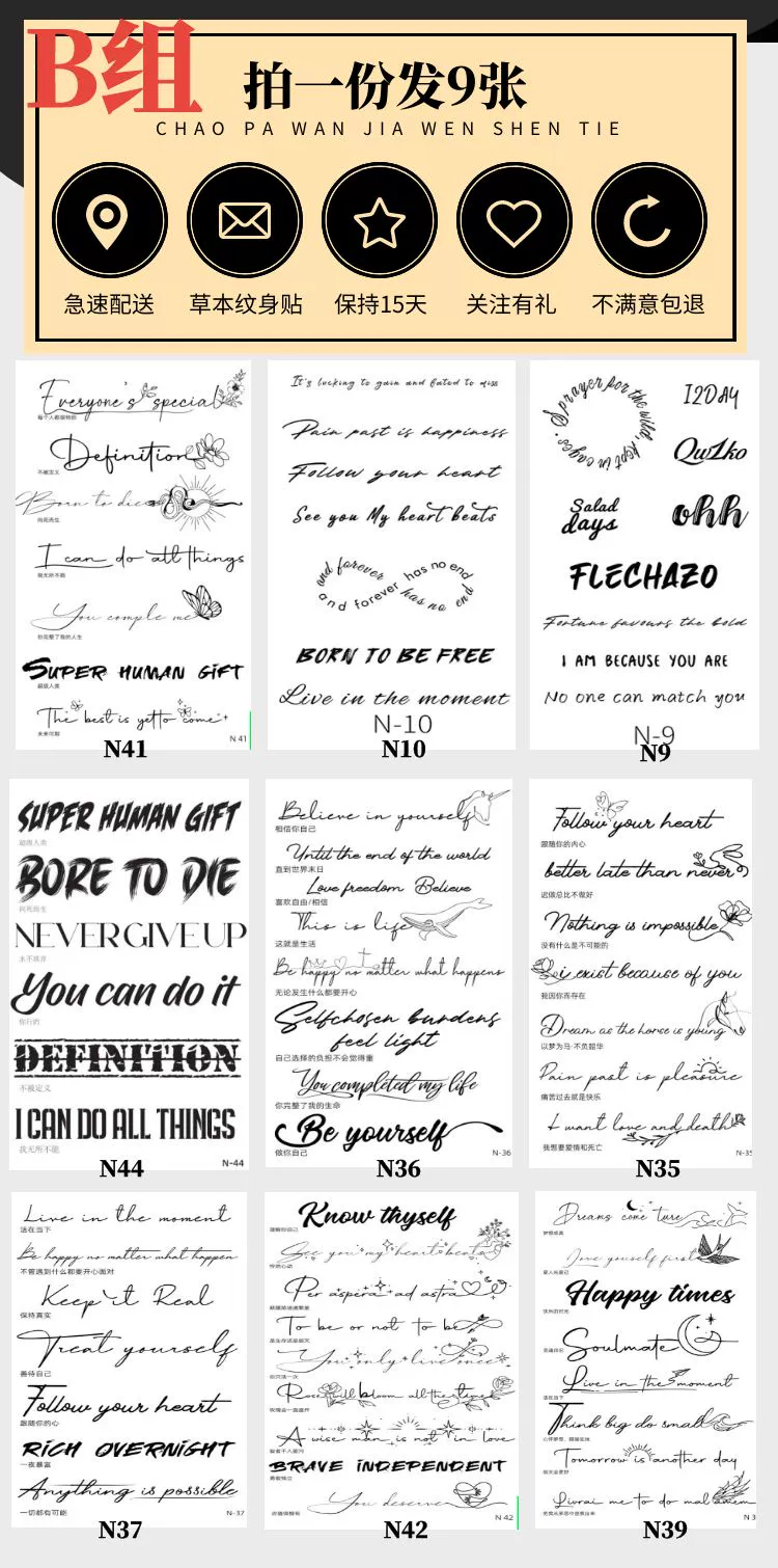| nameOriginal | English letters high-end collarbone herbal tattoo stickers |