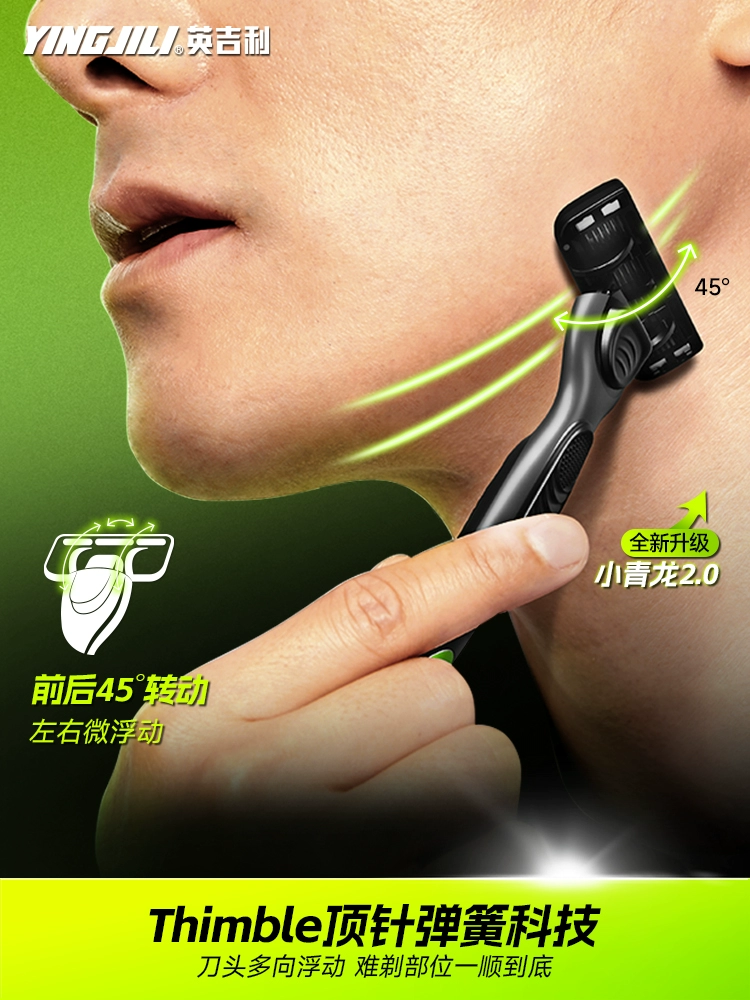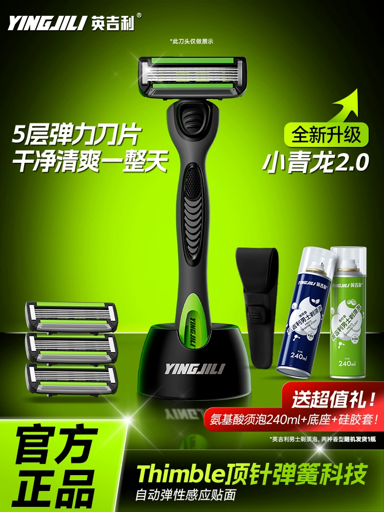 | nameOriginal | English Xiaoqinglong razor manual razor men's non-geely five-layer head foam beard cream set |
