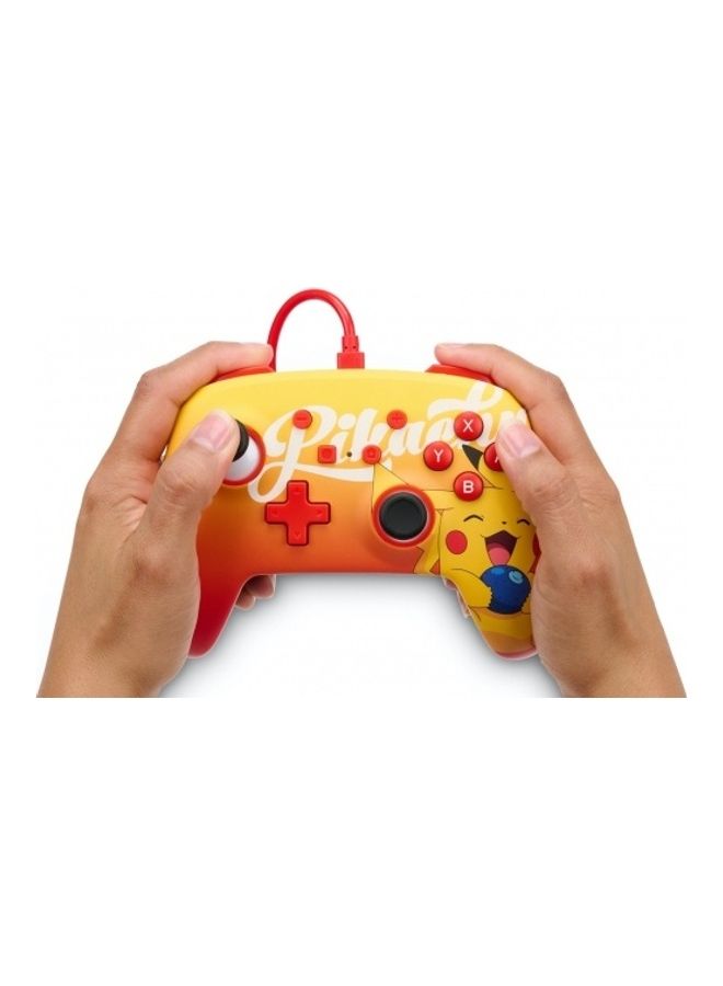 The Pokémon Oran Berry Pikachu Enhanced Wired Controller for Nintendo Switch is the perfect accessory for any Pokémon fan who loves to play their favorite games on the Nintendo Switch. This controller features a vibrant design inspired by the iconic Pikachu character, with a bright yellow and black color scheme and the signature Oran Berry symbol on the front.