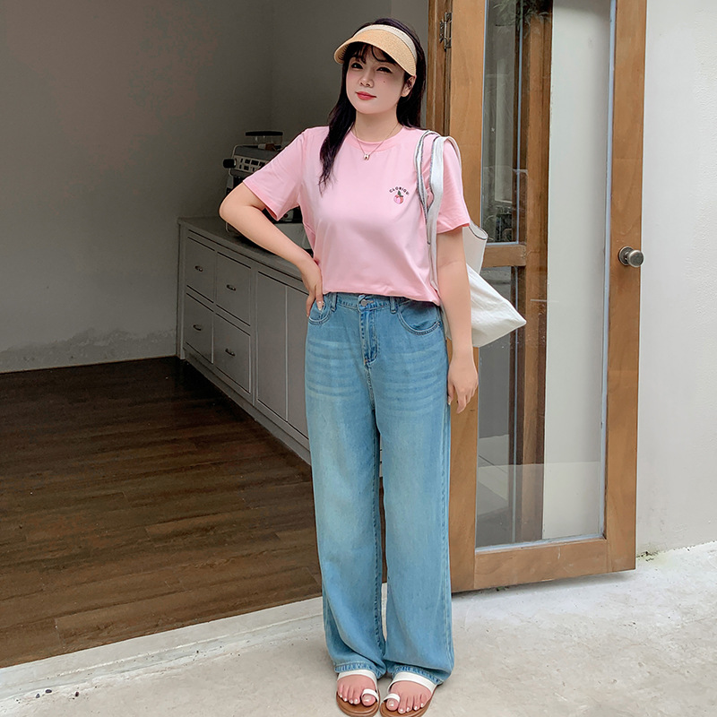 Enoch chubby girl High Waist Straight Jeans Women’s 2024 Summer New Cooler Tencel Wide Leg Pants 260397