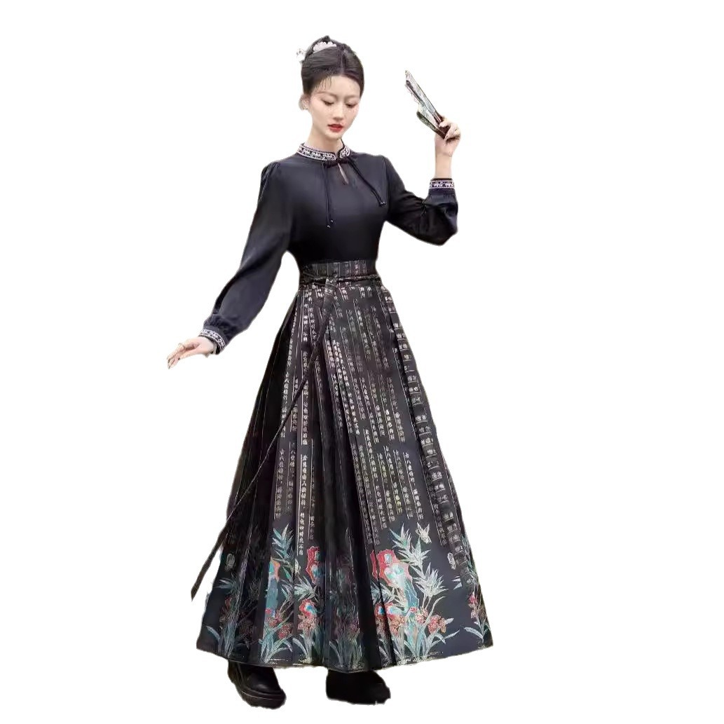 | nameOriginal | Entity for new Chinese classic black high-end horse-faced skirt Hanfu suit national style summer Joker wholesale |