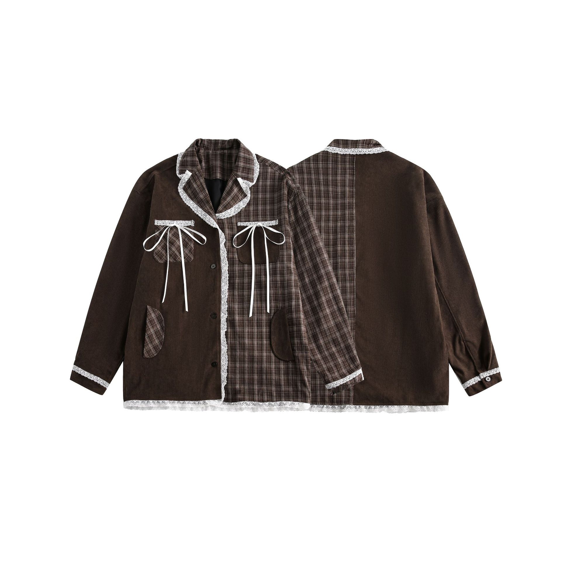 | nameOriginal | EON Women's Wear, 2024 Autumn New Real American Retro Plaid Stitching Lace Lace Lapel Suit Jacket |