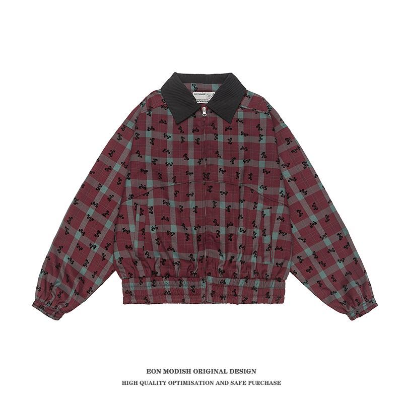 | nameOriginal | EON Women's Wear, 2024 Spring and Autumn New Real American Retro Bow College Style Plaid Jacket |