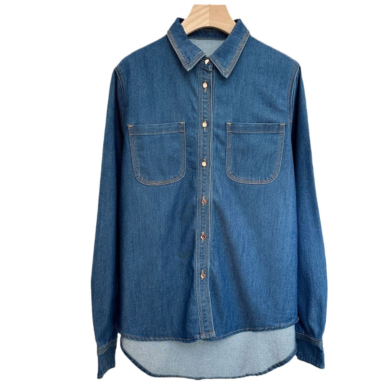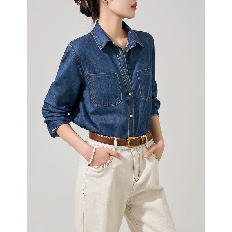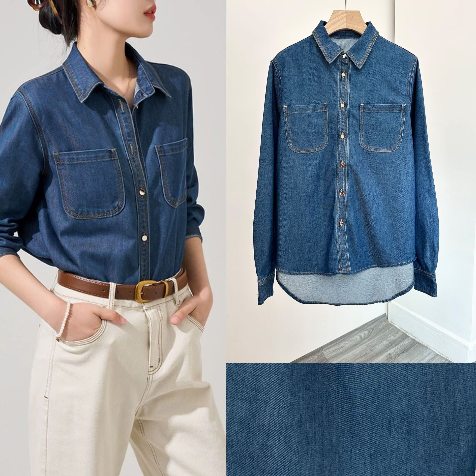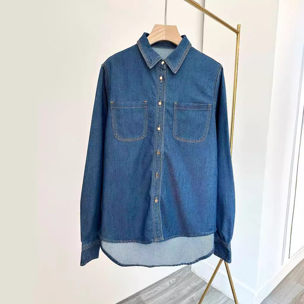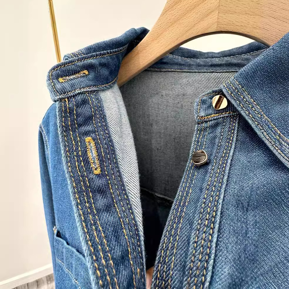 | nameOriginal | EP Ya ~ high-end early spring American retro lapel dark blue gold buckle pocket wash Denim coat plus size |