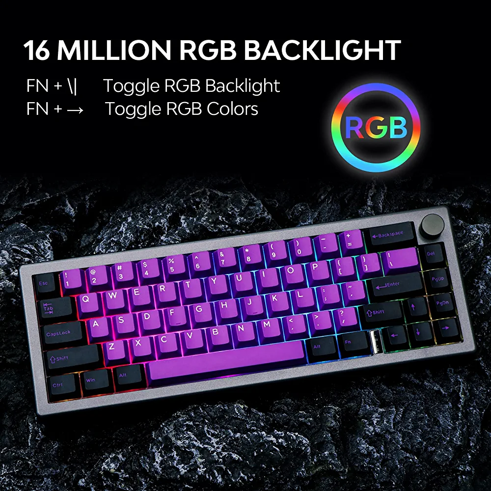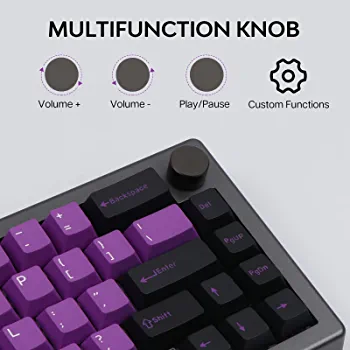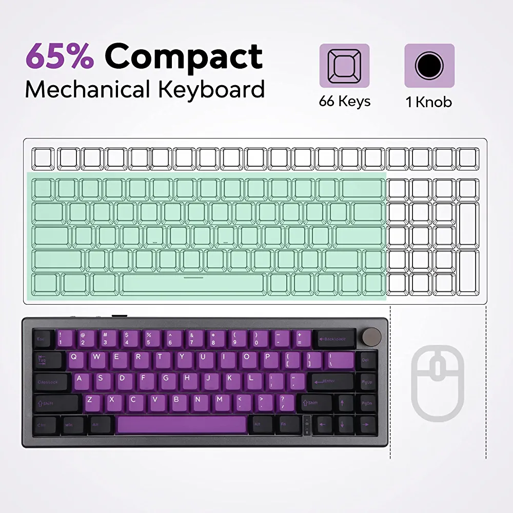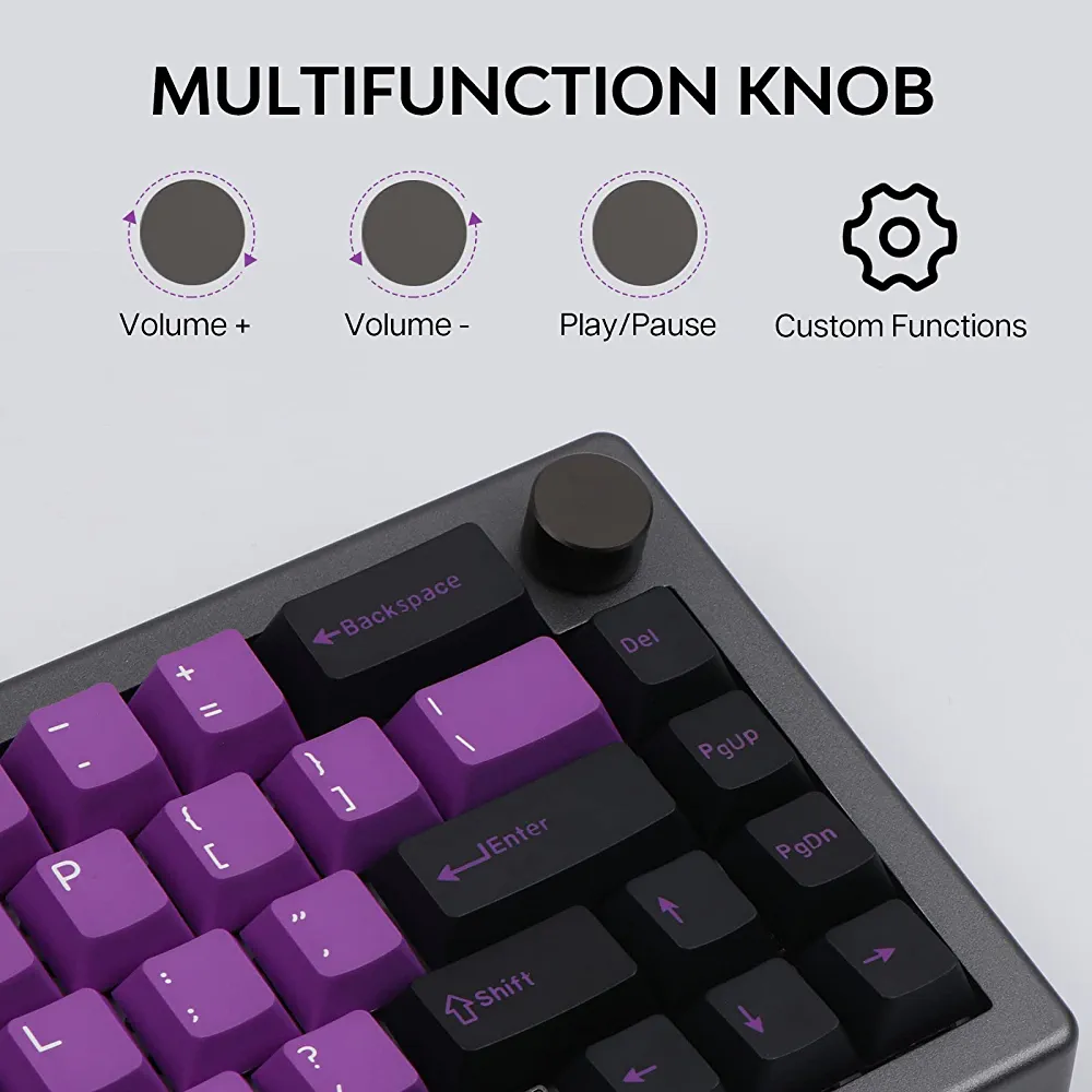 The EPOMAKER EK68 65% Gasket NKRO Hot Swappable 2.4Ghz/Bluetooth 5.0/USB-C Wired Mechanical Gaming Keyboard with Knob is the perfect keyboard for gamers and professionals alike. With its compact 65% design, this keyboard is perfect for those who need a smaller keyboard without sacrificing functionality. The Gasket NKRO Hot Swappable feature allows you to easily swap out switches without having to desolder them, making customization a breeze.