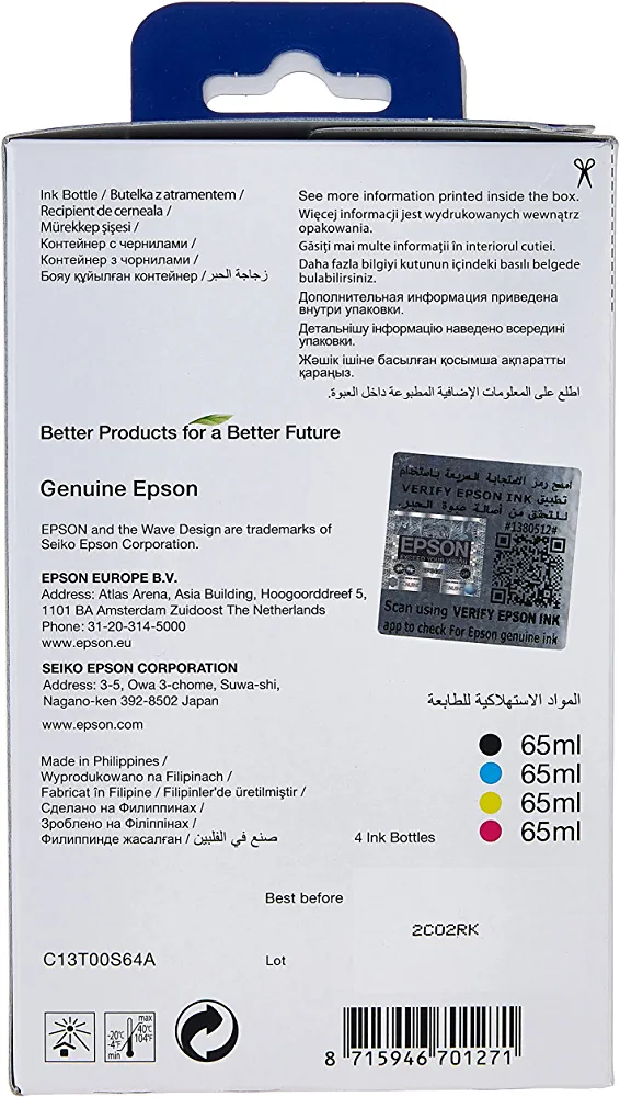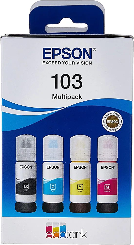 | nameOriginal | Epson 103 Ink EcoTank 4-colour Multipack, Black, Magenta, Cyan, Yellow, Large |