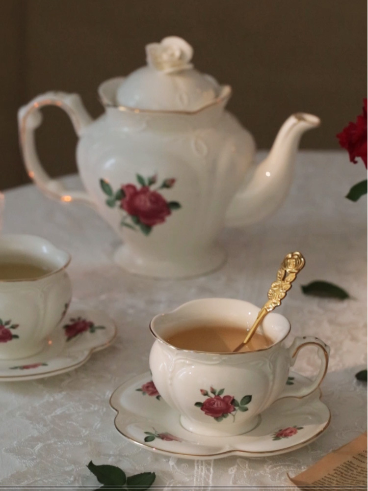 | nameOriginal | EQ4F French retro rose afternoon Black Tea Cup Saucer Tea Set coffee cup saucer European court style new bone ceramic |