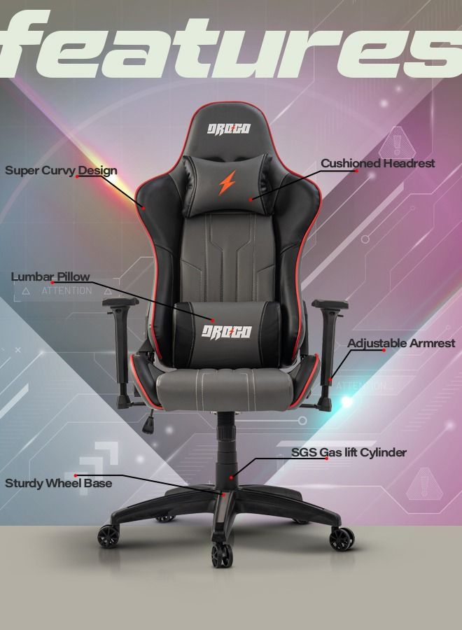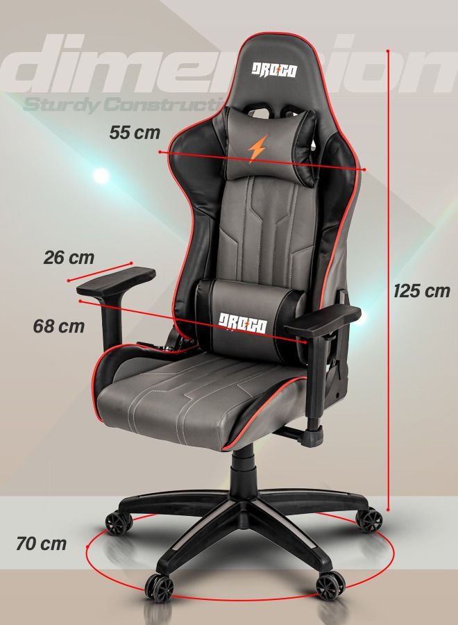 The DROGO Ergonomic Gaming Chair also comes with a head and lumbar support pillow, which provides additional support to your neck and lower back, reducing the risk of strain and injury. The chair is perfect for both home and office use, and its sleek grey design will complement any decor.