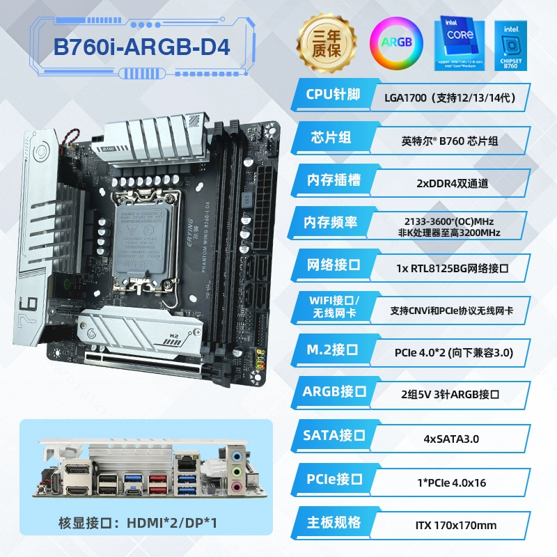 | nameOriginal | ERYING B760i-ARGB-iTX pure white motherboard supports 12th and 13th generation DDR4 wireless WIFI |