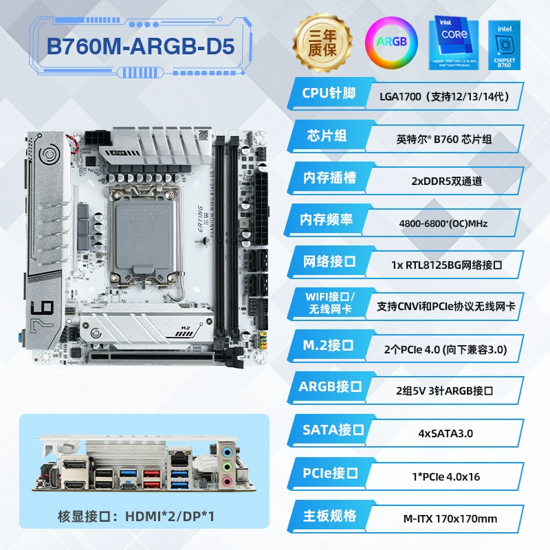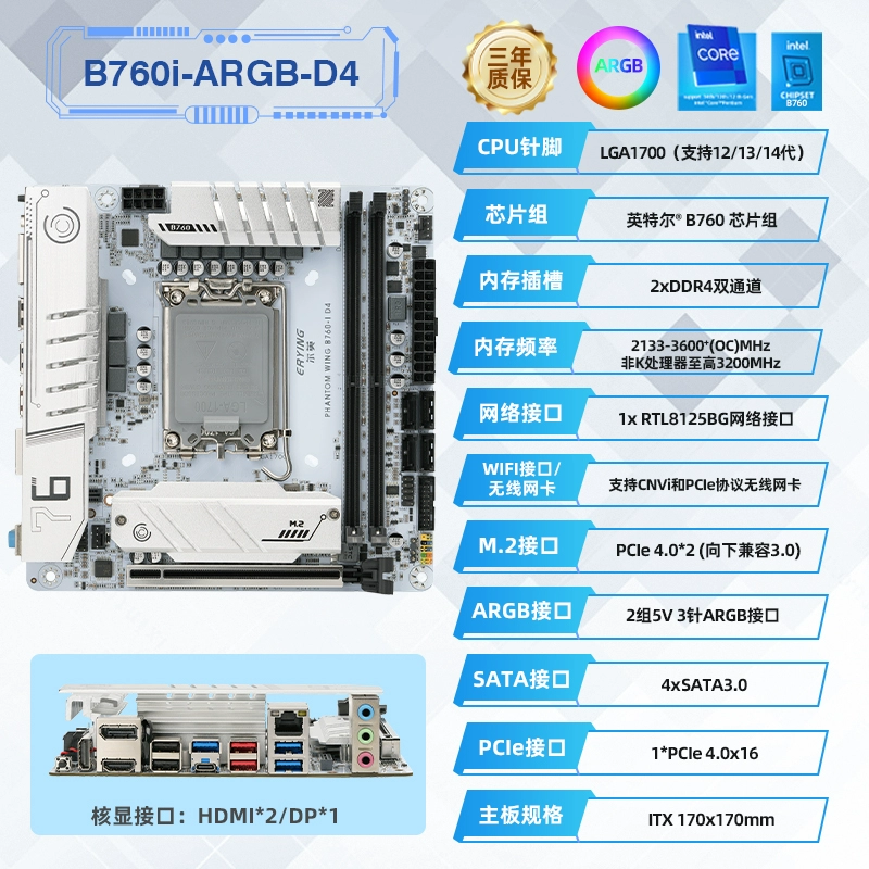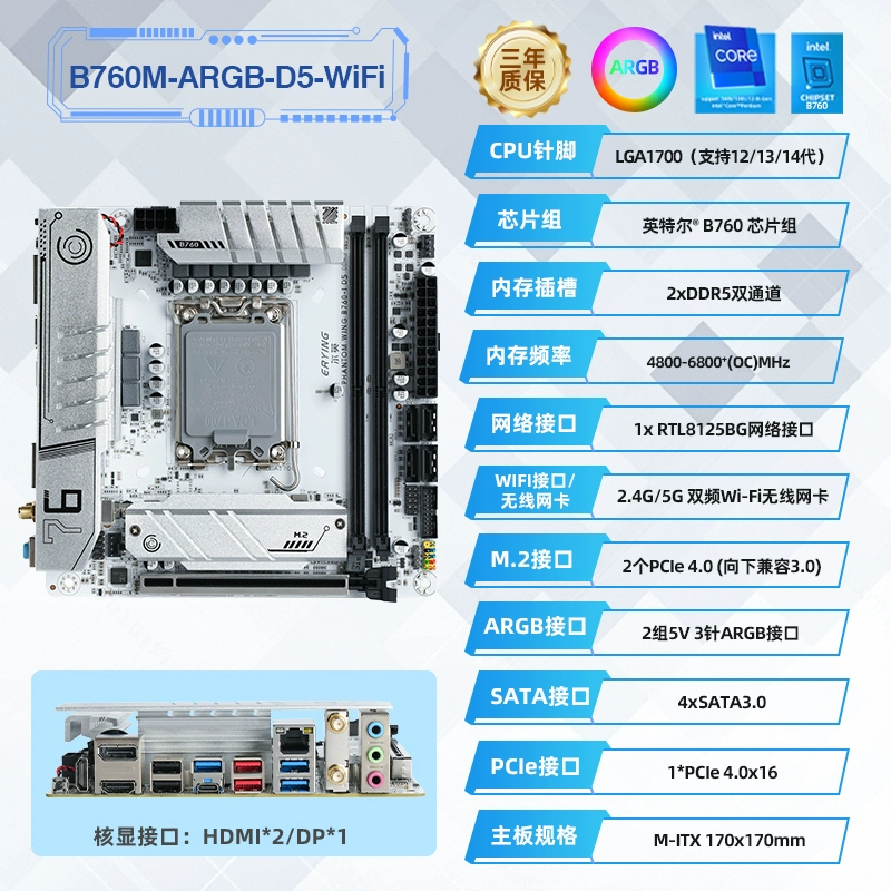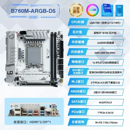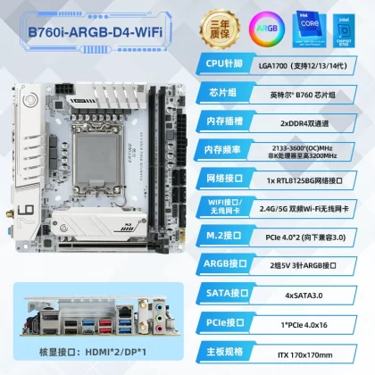 | nameOriginal | ERYING B760i-ARGB-iTX pure white motherboard supports 12th and 13th generation DDR4 wireless WIFI |