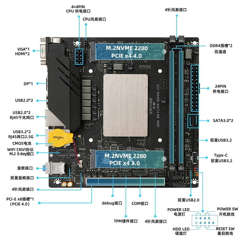| nameOriginal | Erying onboard CPU set i7-12650H desktop mⅰni-ITX dual network port soft routing industrial motherboard |