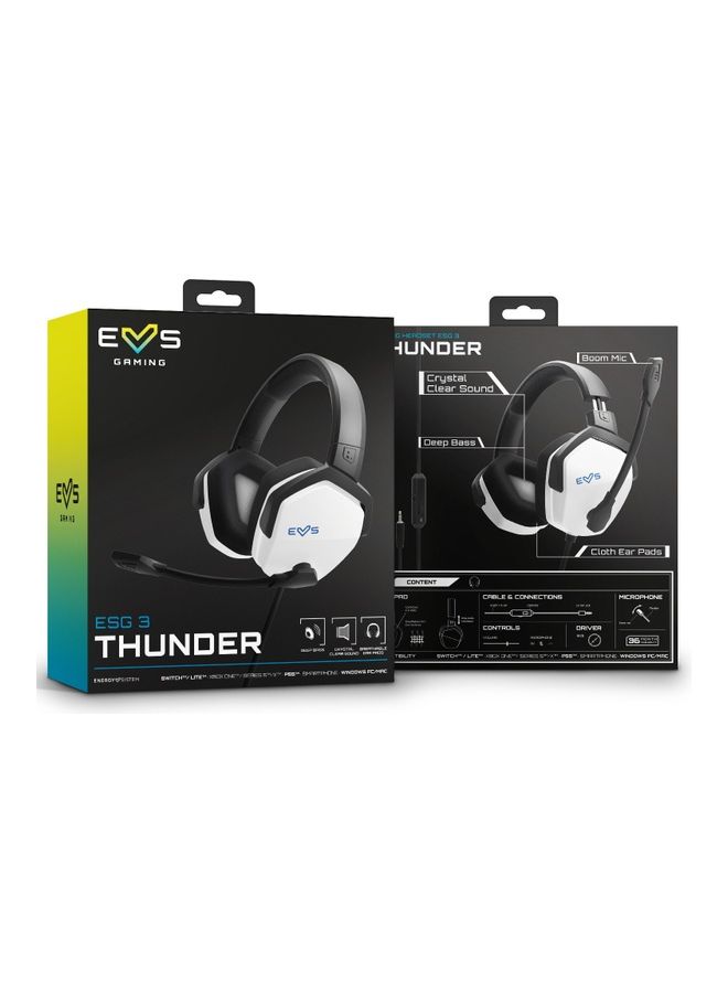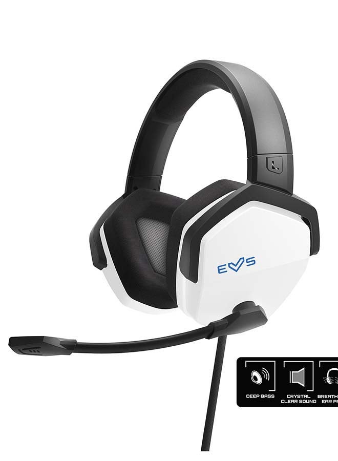 ES Gaming Headset ESG 3 White Thunder Gamer Headphones (Deep Bass, Cloth Ear Pads, Crystal Clear Sound)