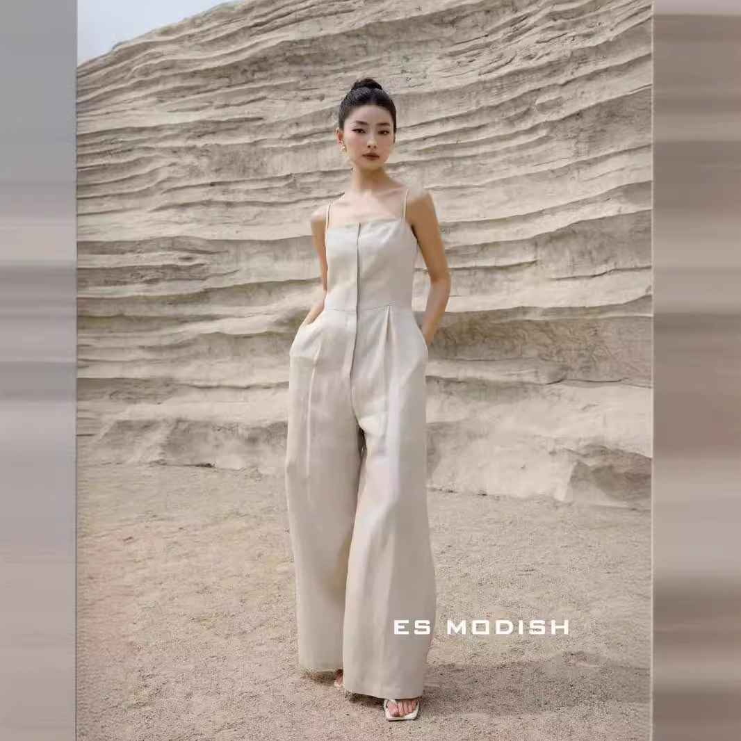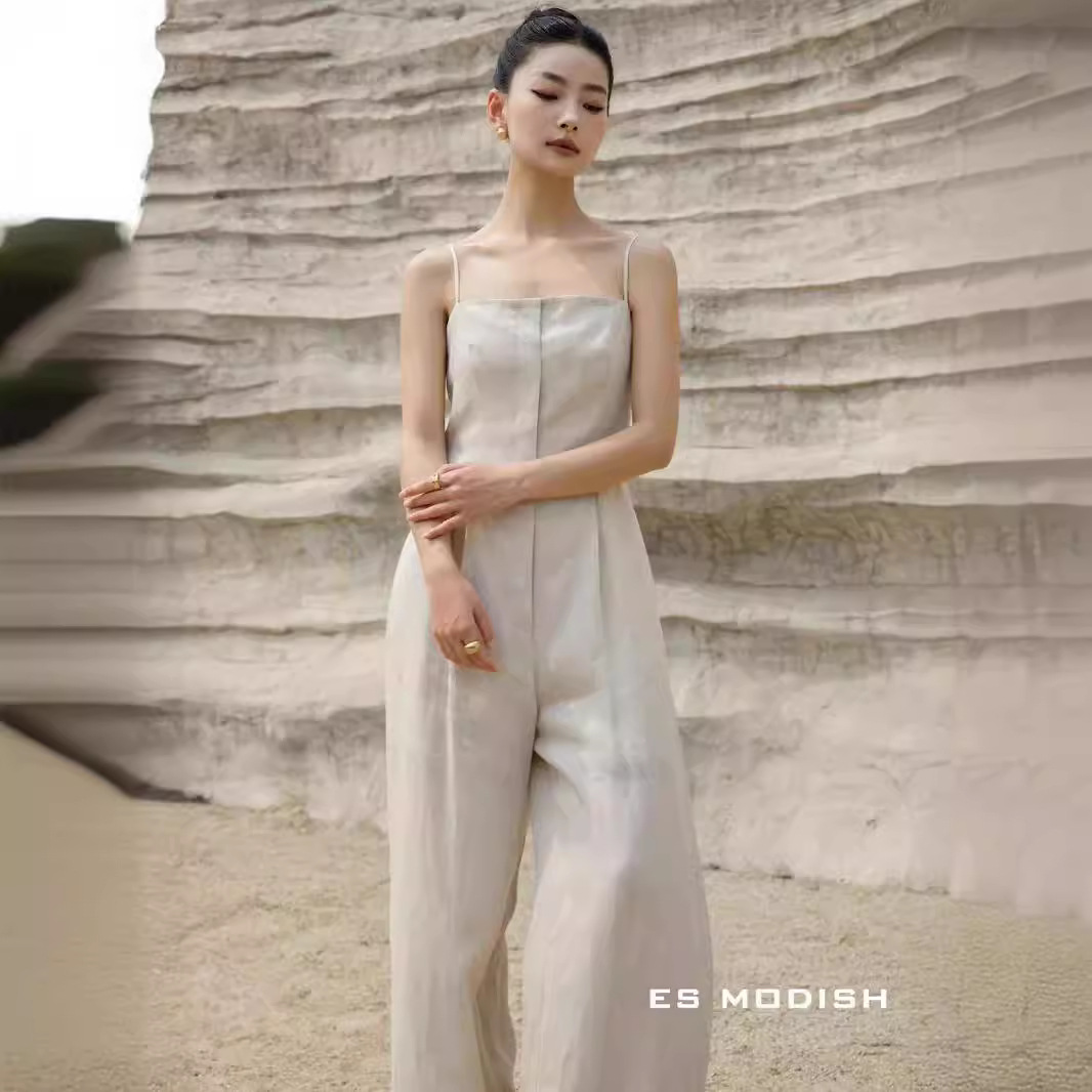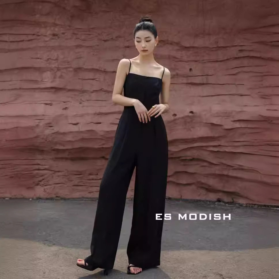 ES MODISH Summer New Korean-style High-end Strap Pants Solid Color Elegant High Waist Straight Pants for Girls
