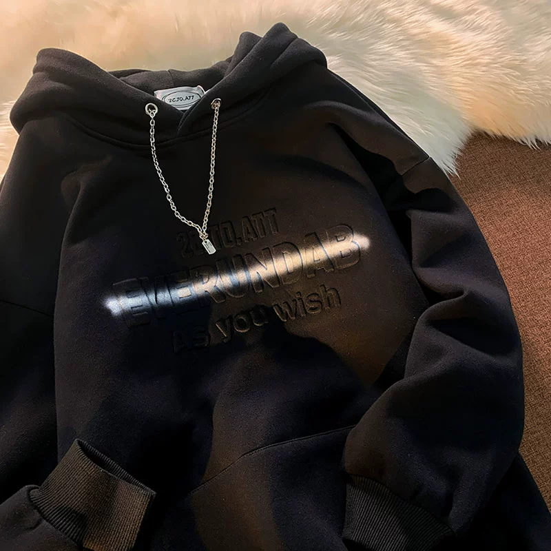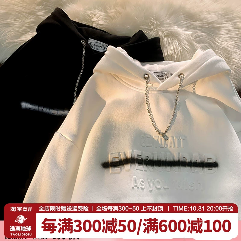 | nameOriginal | Escape from the Earth American foam letter hooded sweatshirt women's trendy brand street loose bf casual couple velvet jacket |