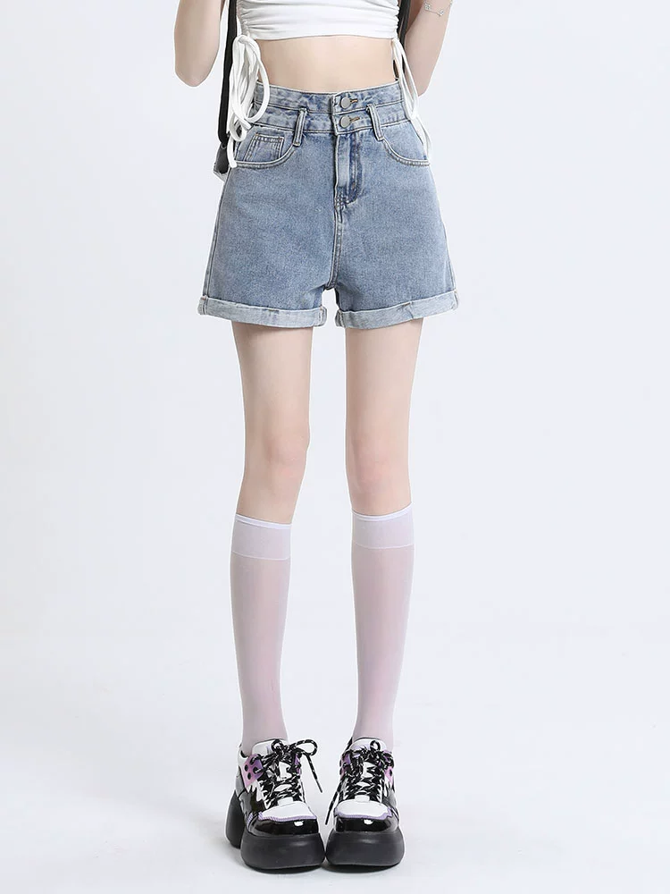 | nameOriginal | Escape from the Earth Curled High Waist Women's Summer Denim Shorts |
