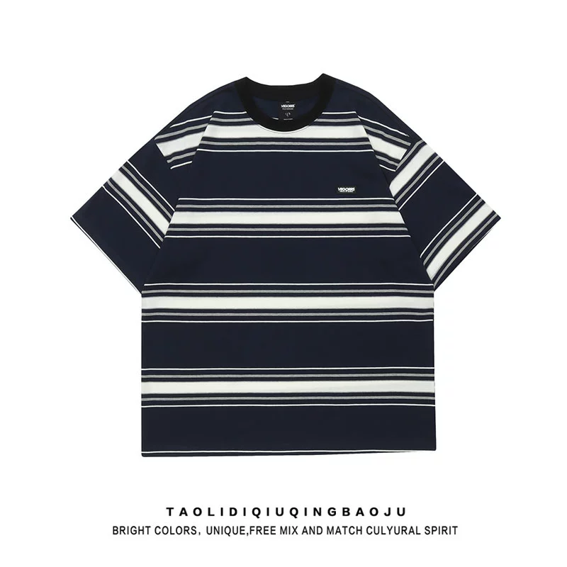 | nameOriginal | Escape from the Earth Japanese retro striped short-sleeved T-shirt for women summer trendy Harajuku style versatile couple off-shoulder top |