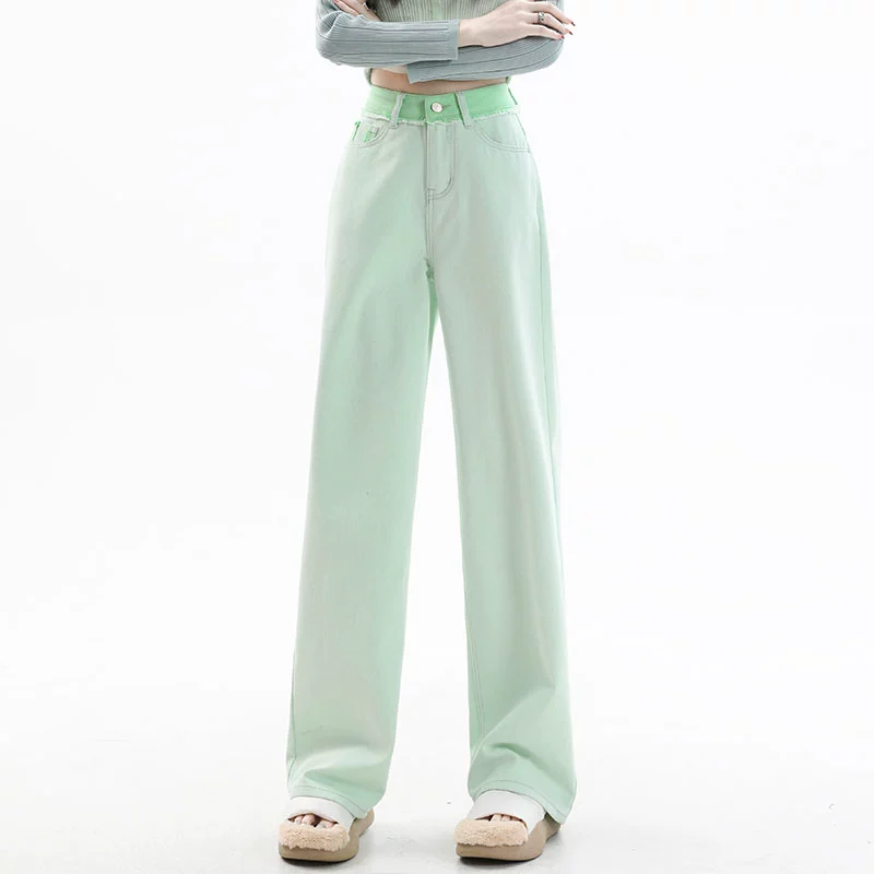 Escape from the earth light pink high -waisted straight straight jeans
