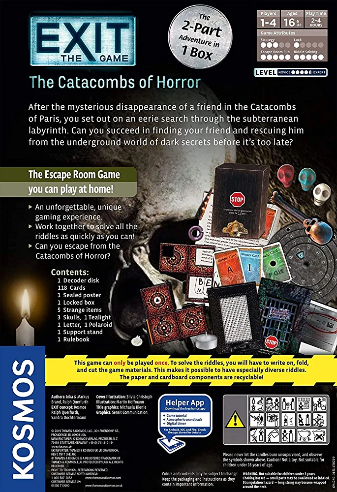 One of the most thrilling games in the series is EXIT: The Catacombs of Horror. In this double-sized game, you and your team must navigate the underground catacombs to find a missing friend and escape the darkness. But be warned – this game is rated 4.5 out of 5 for difficulty, so you’ll need to bring your A-game to succeed. And remember, each game can only be played once, so make the most of your time and enjoy the challenge!
