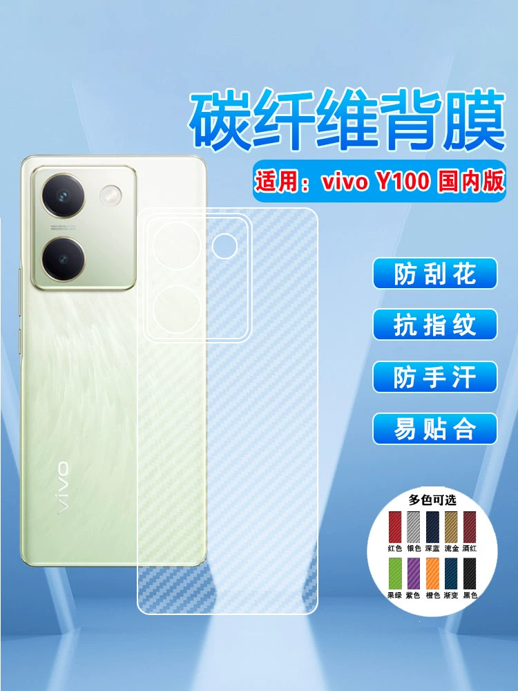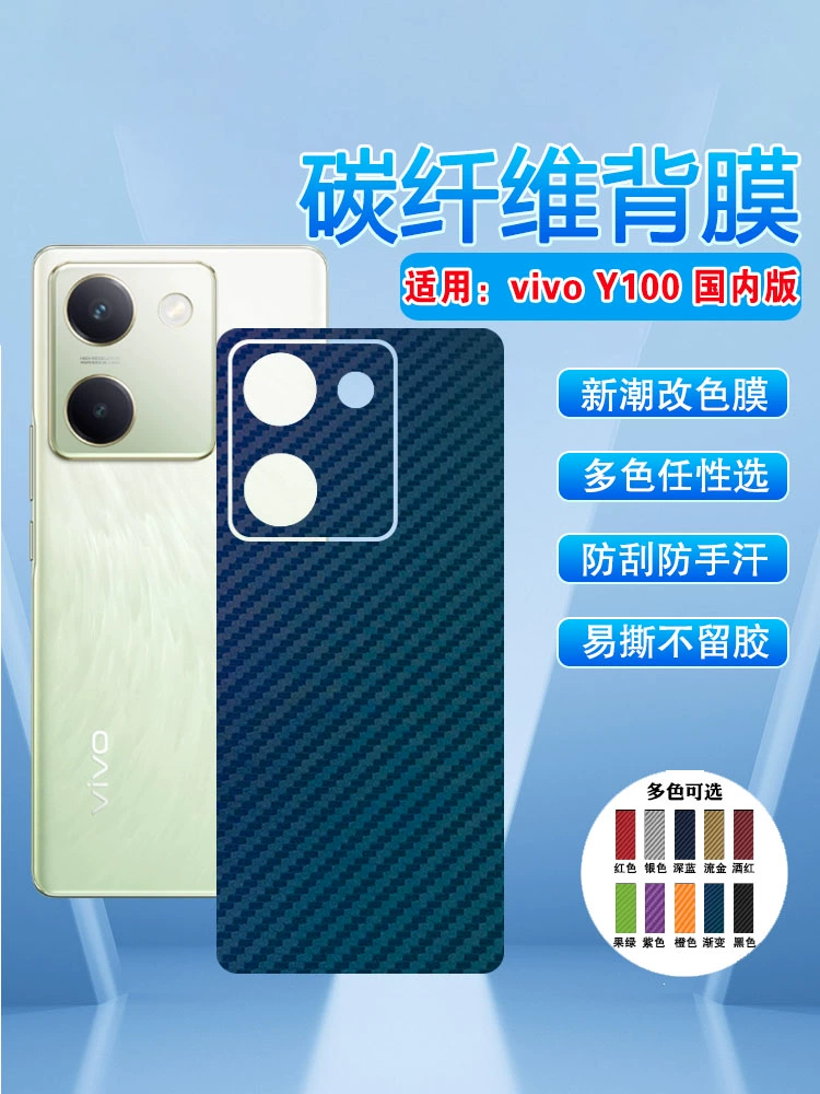 | nameOriginal | Esdo is suitable for vivoY100t mobile phone rear film, new vivoy100i lens all-inclusive V2314A carbon fiber back film V2313A anti-scratch rear shell sticker V2279A frosted color changing film |