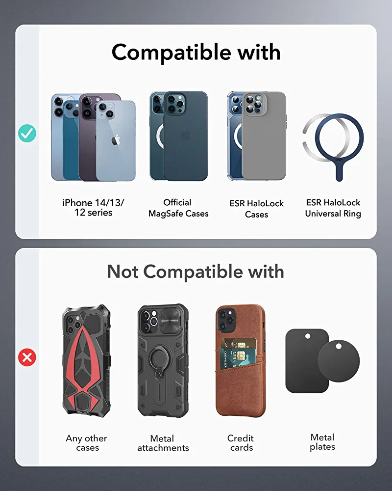 ESR HaloLock MagSafe Car Mount Magnetic Phone Holder, Does Not Support Charging, Compatible with iPhone 14/14 Plus/14 Pro/14 Pro Max and iPhone 13/12 Series, Metallic Grey