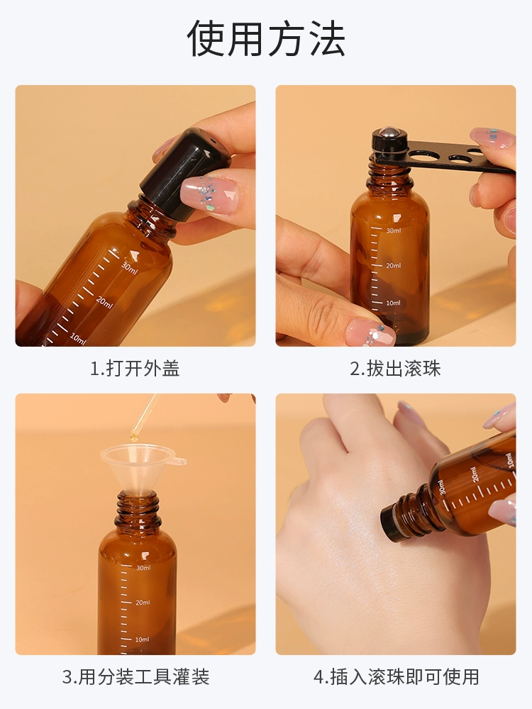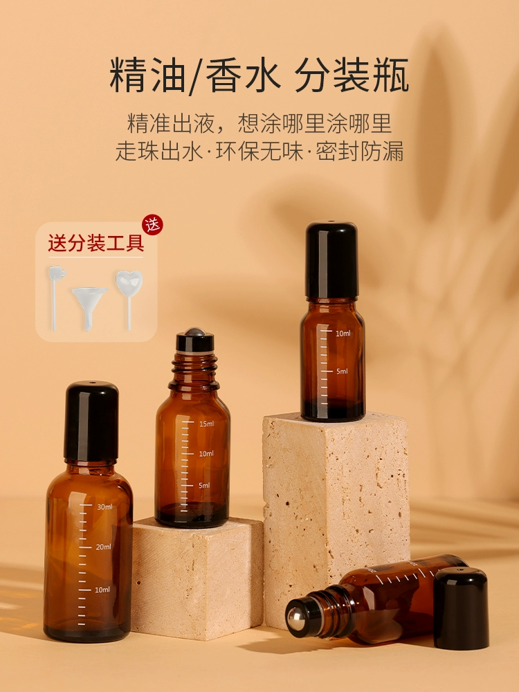 Essential oil perfume roller ball bottle smear-type rolling ball glass brown light-proof and smooth multiple liquid pure essential oil empty bottles