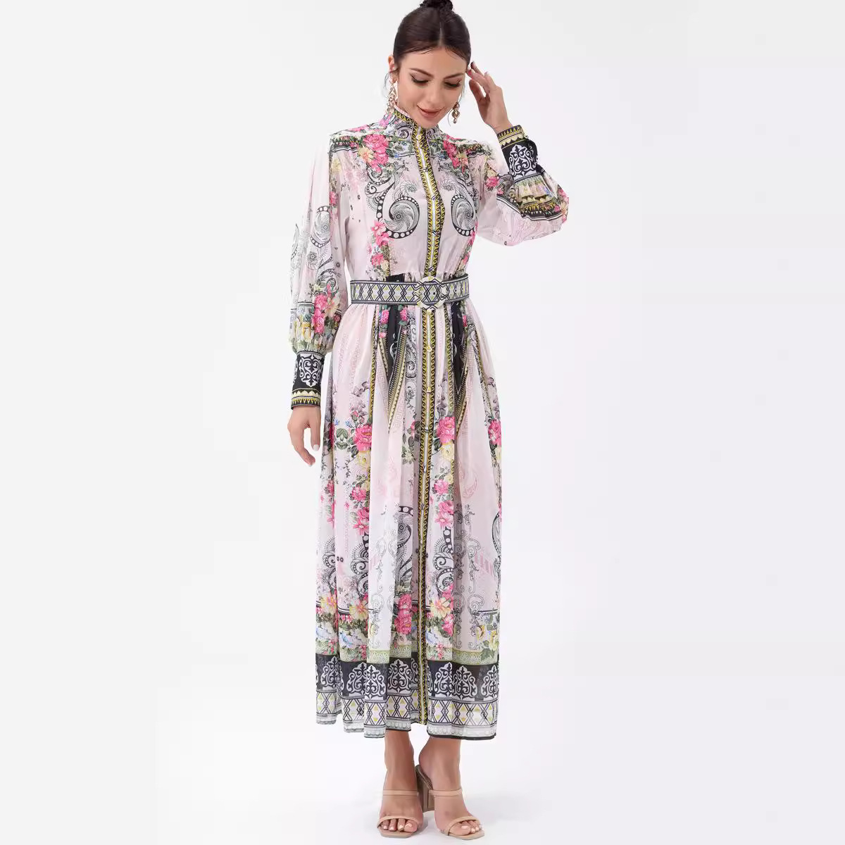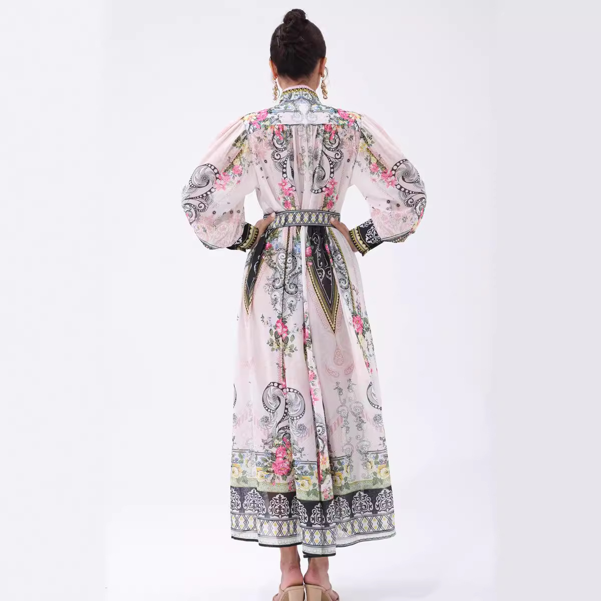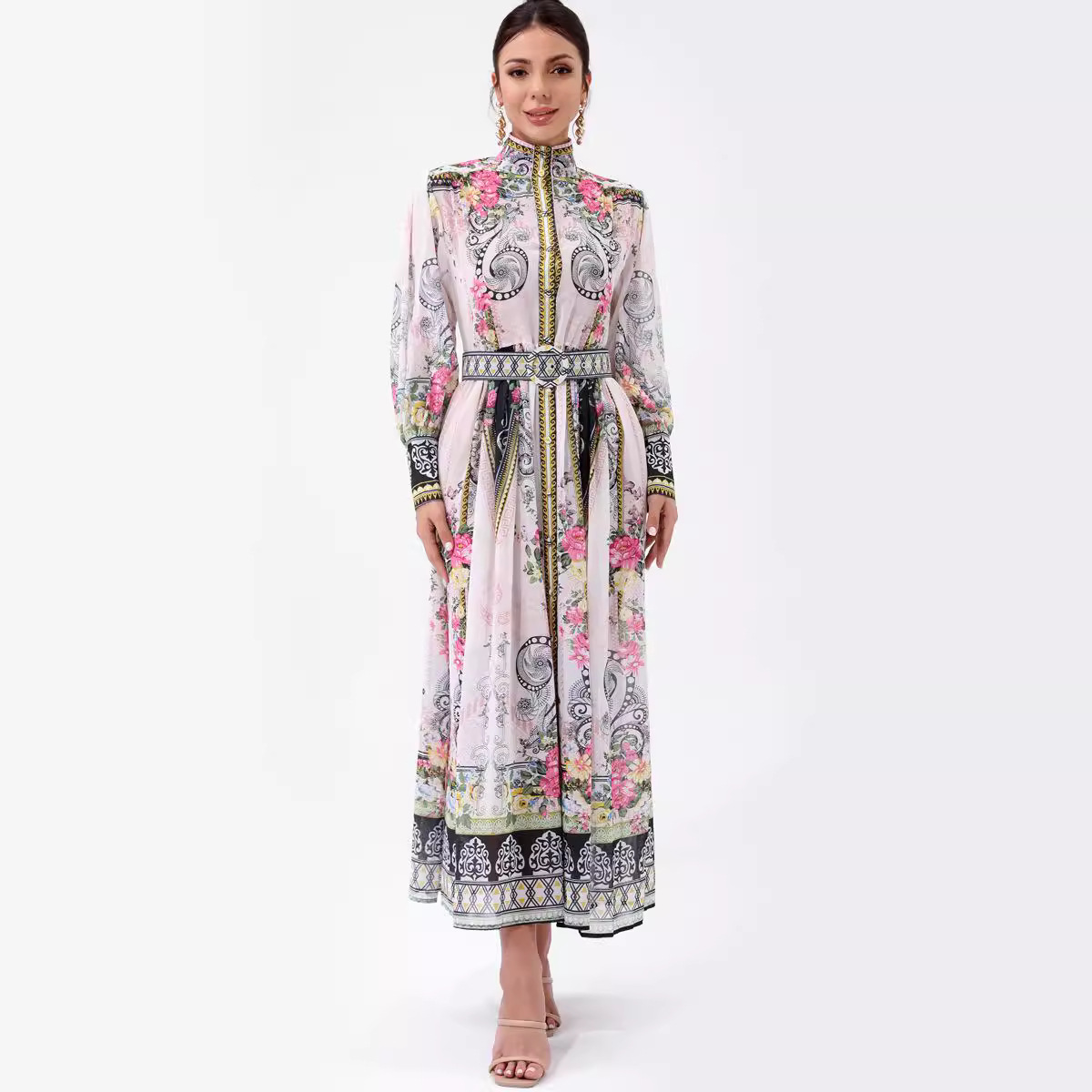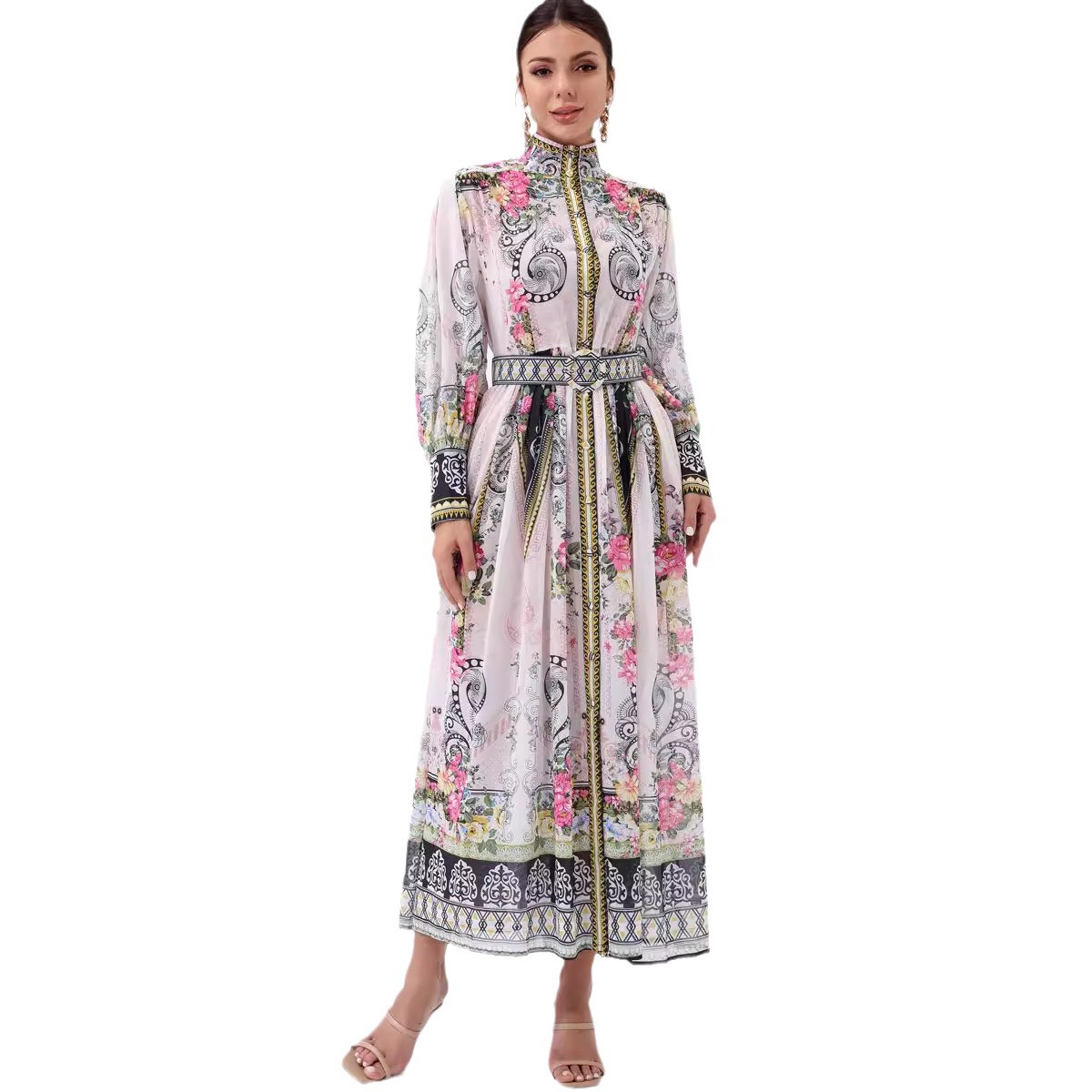 | nameOriginal | Ethnic Characteristics dress Amazon Independent Station Cross-border New Women's Stand Collar Printed Bubble Lantern Sleeve Long Dress |