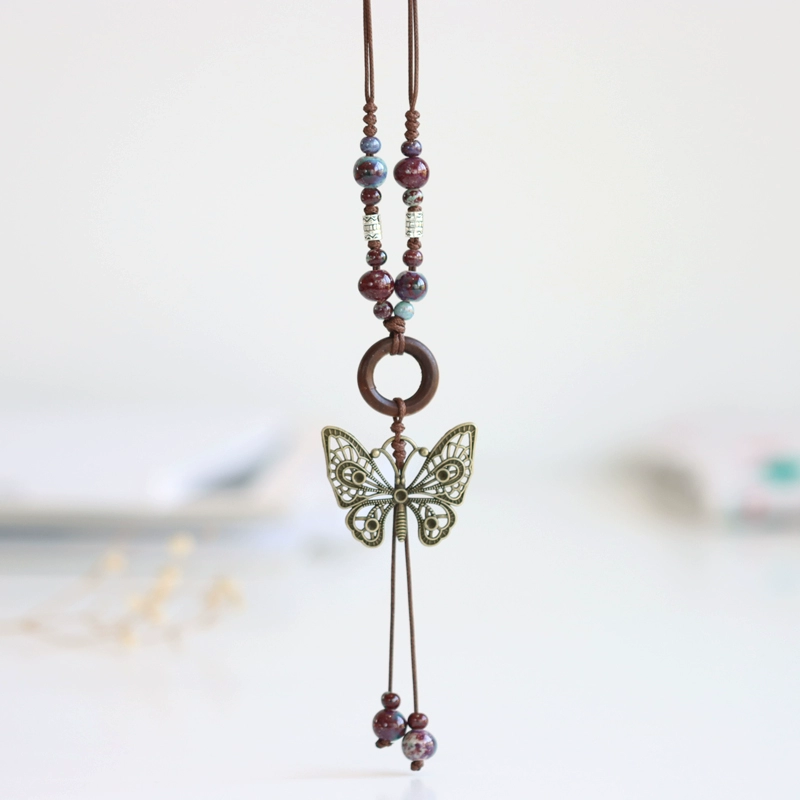 Jingdezhen ceramic retro Chinese wind butterfly sweater chain