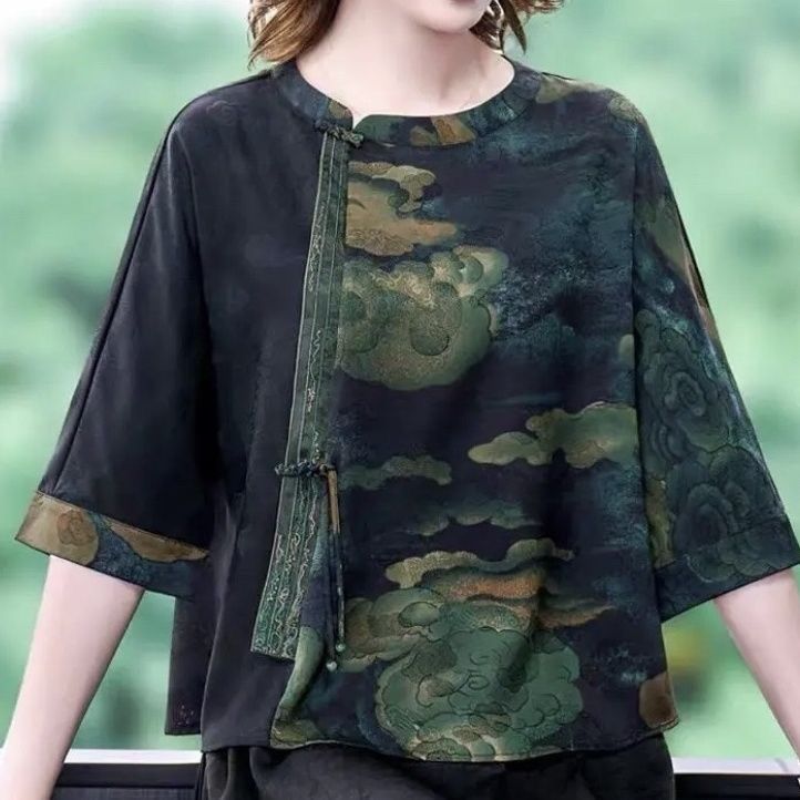 | nameOriginal | Ethnic style coat Xiangyun yarn Chinese style top national style buckle small shirt Women's Western style summer new style mother Noble |