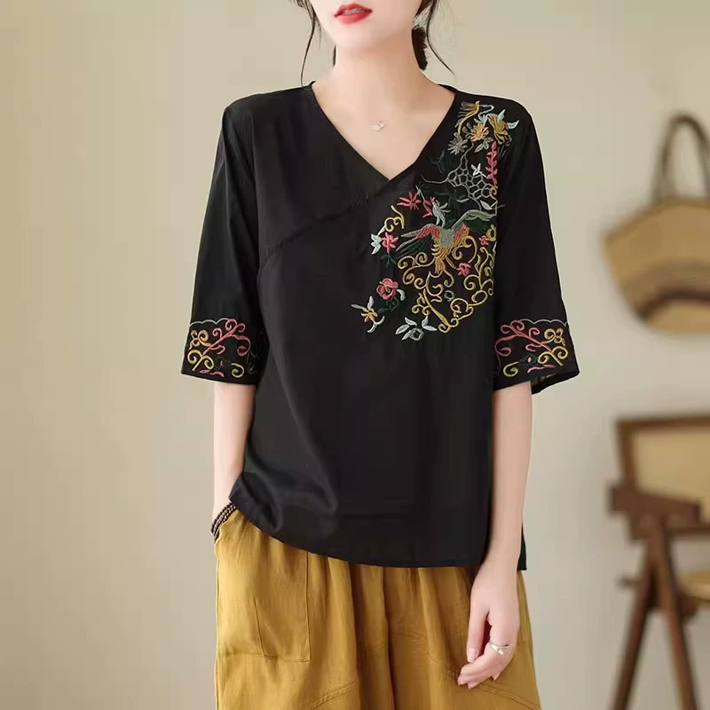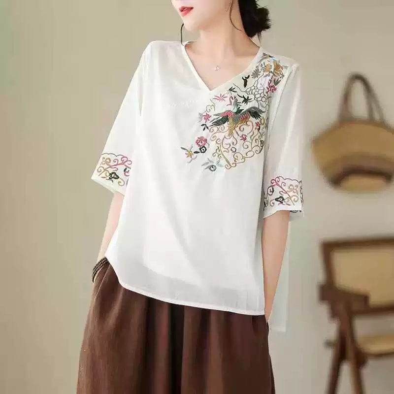 | nameOriginal | Ethnic style heavy industry cotton and linen half-sleeved casual pullover embroidery |