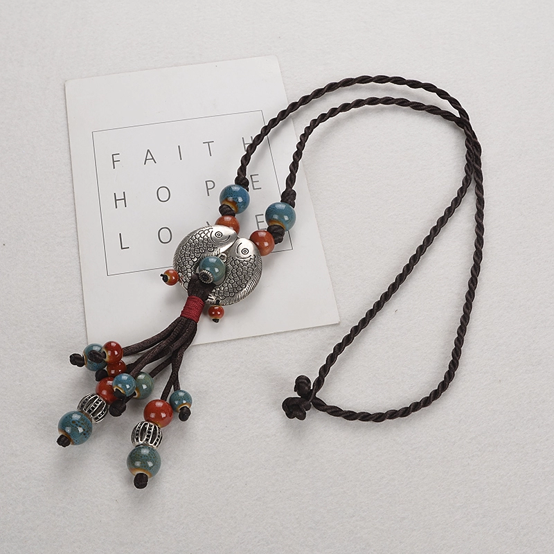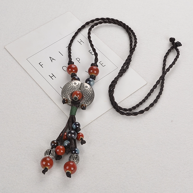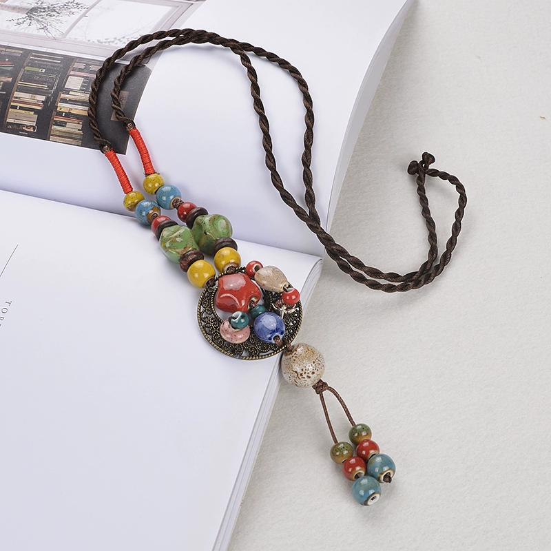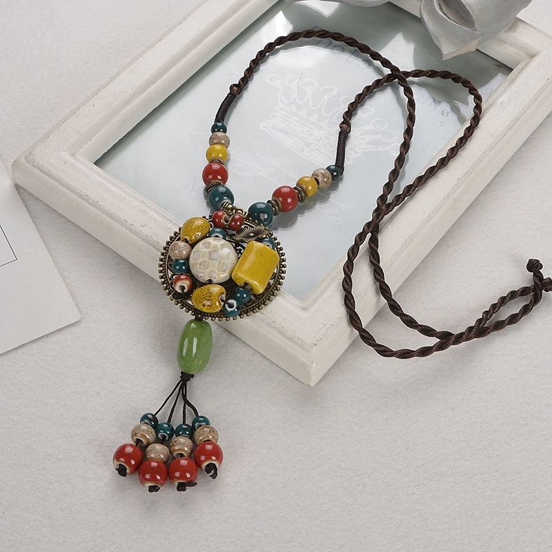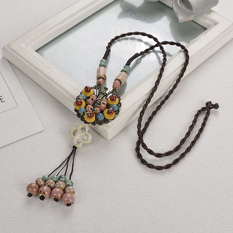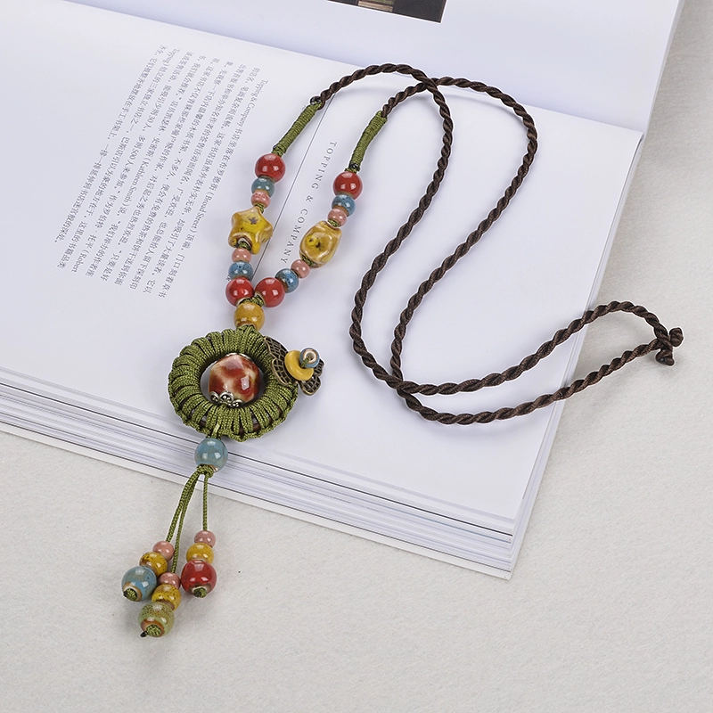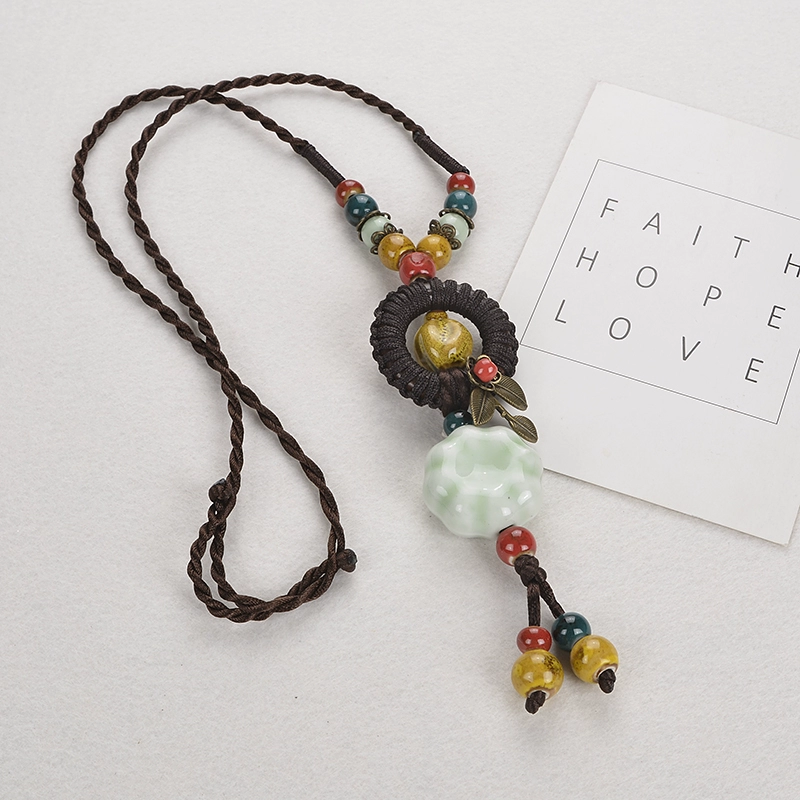 | nameOriginal | Ethnic style hemp rope handmade ceramic sweater chain jewelry |