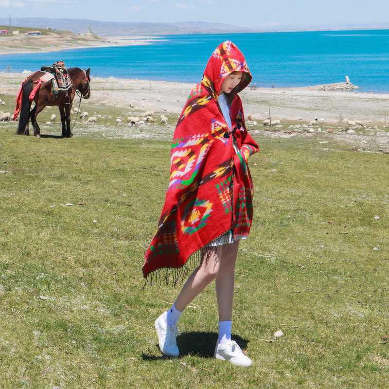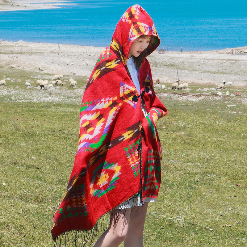 | nameOriginal | Ethnic Style Hooded Poncho Women's Winter Thickened Warm Tea Carrie Jiangxi Tibetan Travel Red Hooded Poncho |