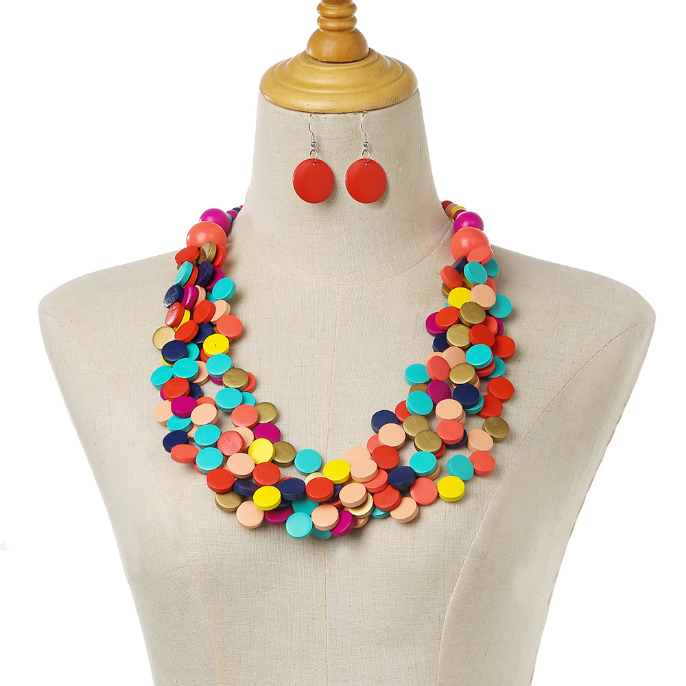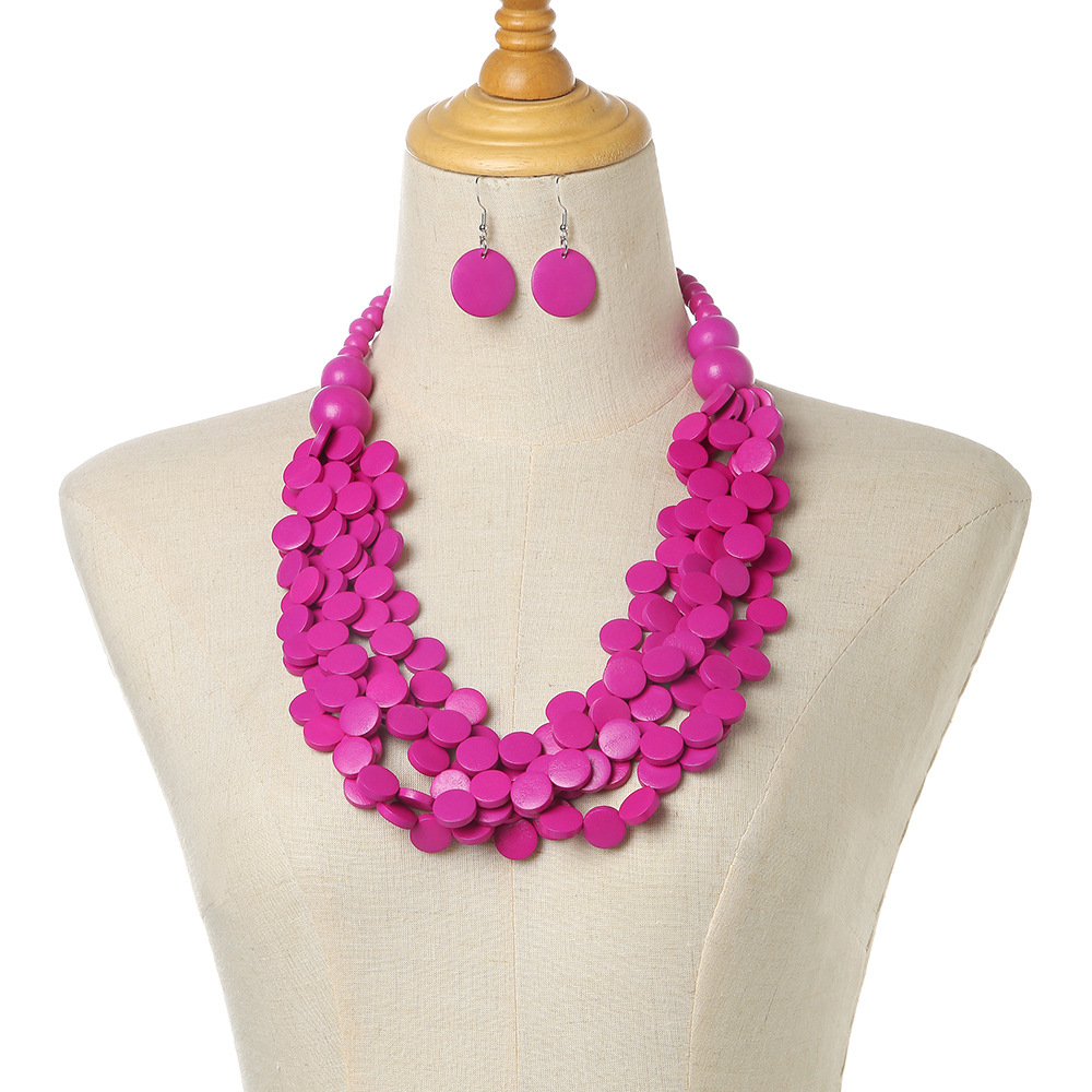 | nameOriginal | Ethnic style irregular wood beaded multi-layer necklace earrings suit sweater chain banquet jewelry necklace |