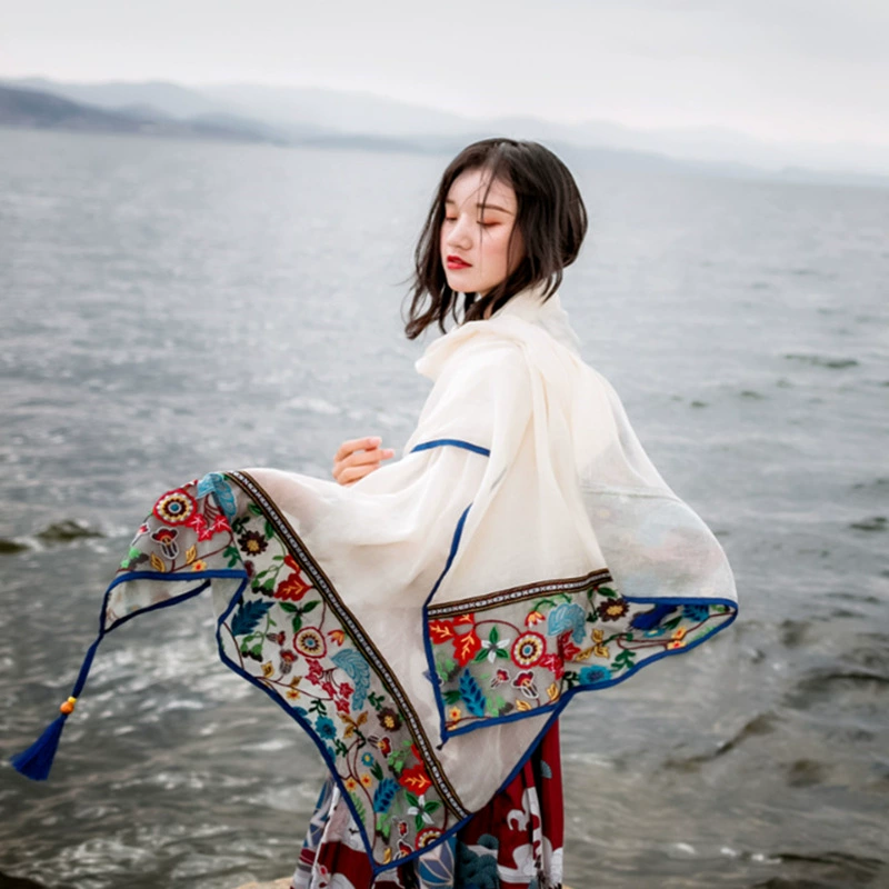 | nameOriginal | Ethnic style lace tassel women's travel cotton and linen scarf |