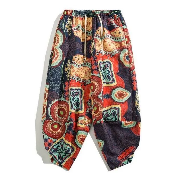 | nameOriginal | Ethnic style linen cropped pants men's trendy bloomers Thai wide-leg carrot pants loose casual harem pants thin |