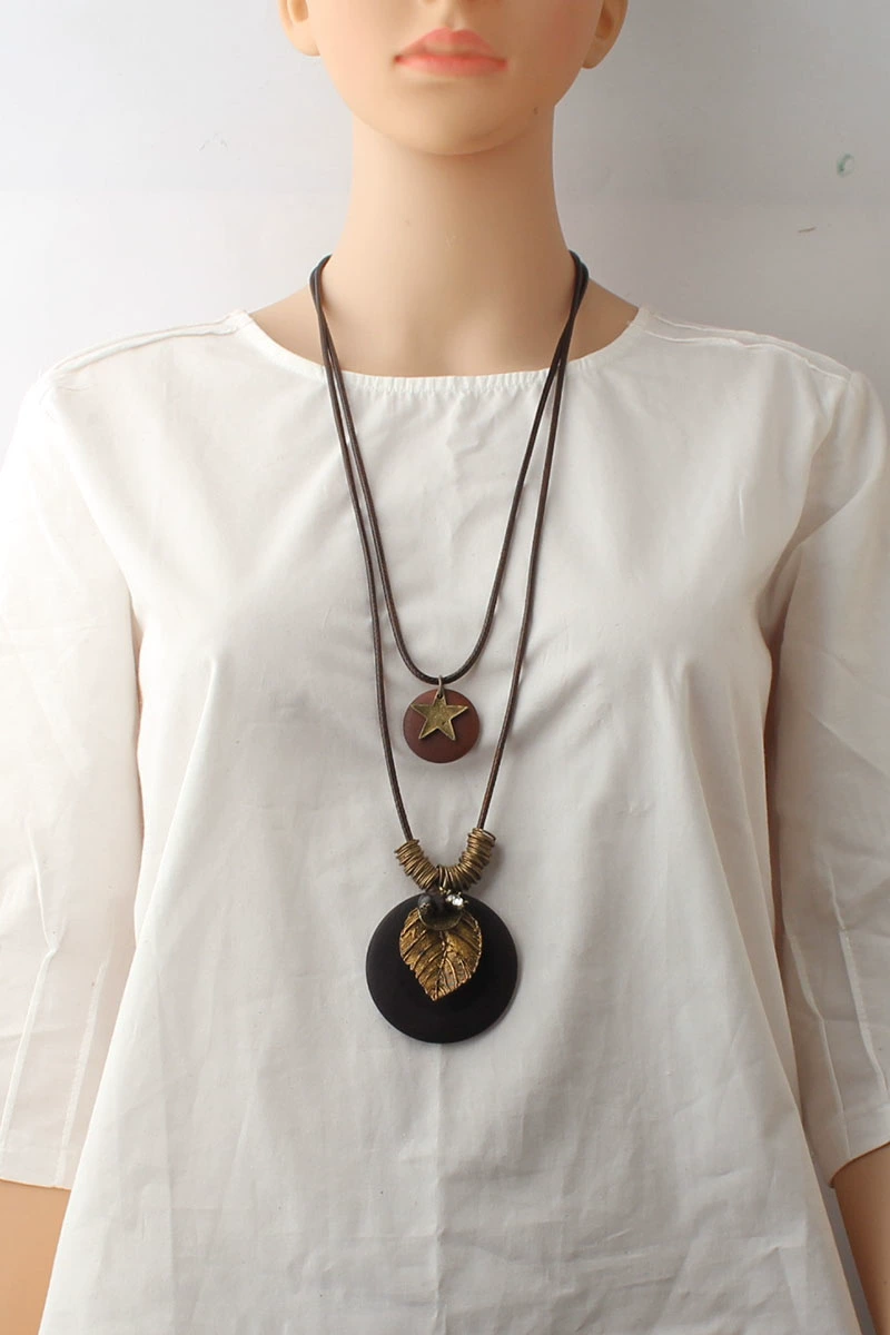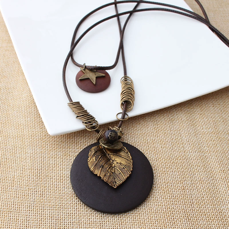 Ethnic wind sweater chain long female retro round decoration necklace, Japanese and Korean ginkgo leaf big pendant wild accessories