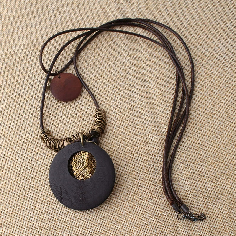 Ethnic style long sweater chain for women, retro round decorative necklace, Japanese and Korean ginkgo leaf large pendant, versatile accessory
