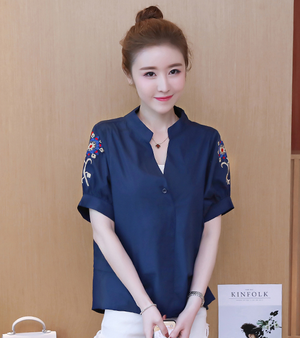 Ethnic style loose casual seven -point sleeve cotton embroidery