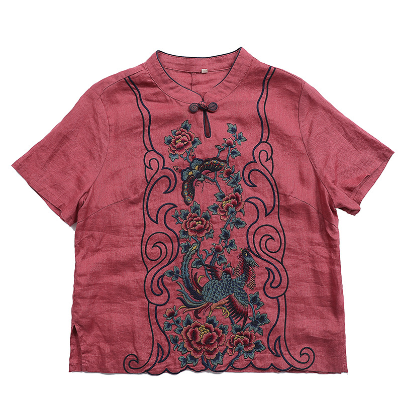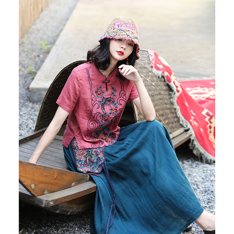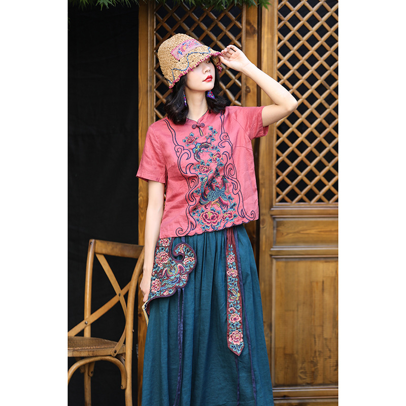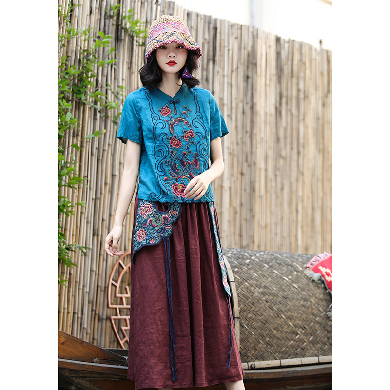 | nameOriginal | Ethnic Style Pure Linen Embroidered Short-sleeved Loose Top Commuter Embroidered Casual Short All-match Summer T-shirt |