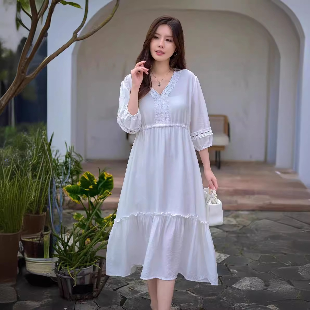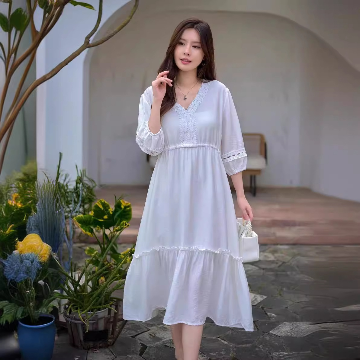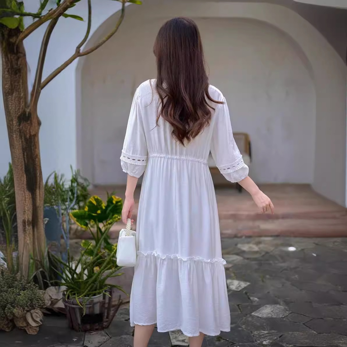 | nameOriginal | Ethnic Style Retro Mid-length Dress Spring and Autumn New Round Neck Short Seven-point Sleeve Embroidered Tight Waist Cotton Linen Dress for Women |