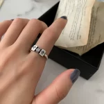 | nameOriginal | Ethnic style S925 silver mahjong ring for women, retro fashion transfer hair open ring, temperament, hip-hop index finger ring trend |