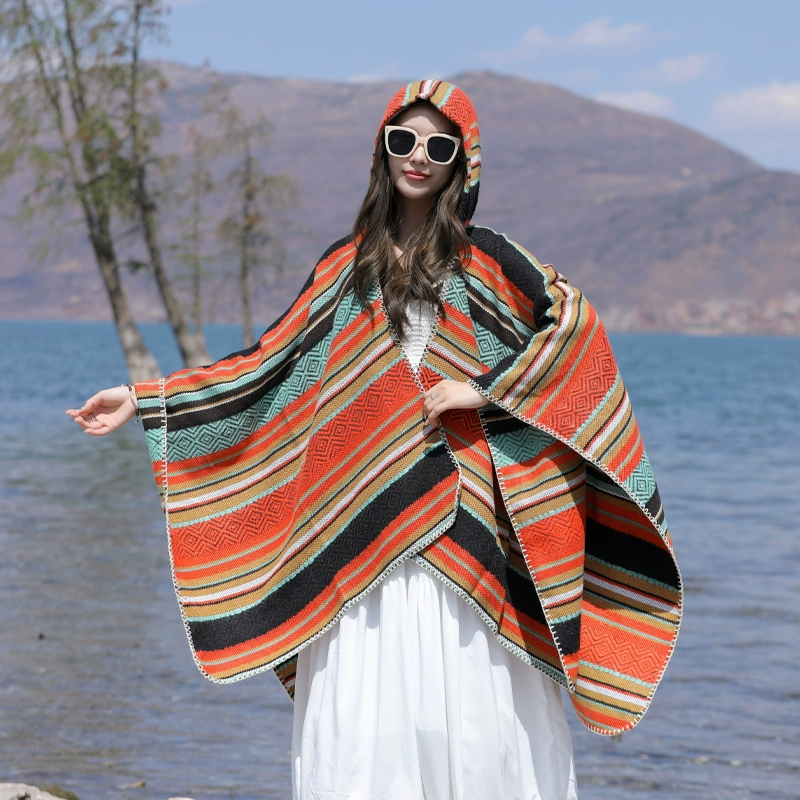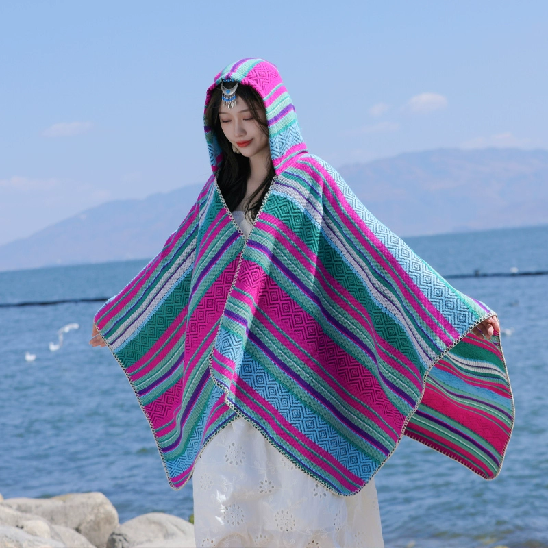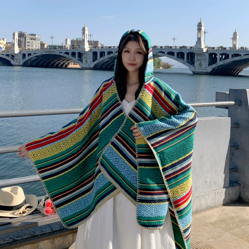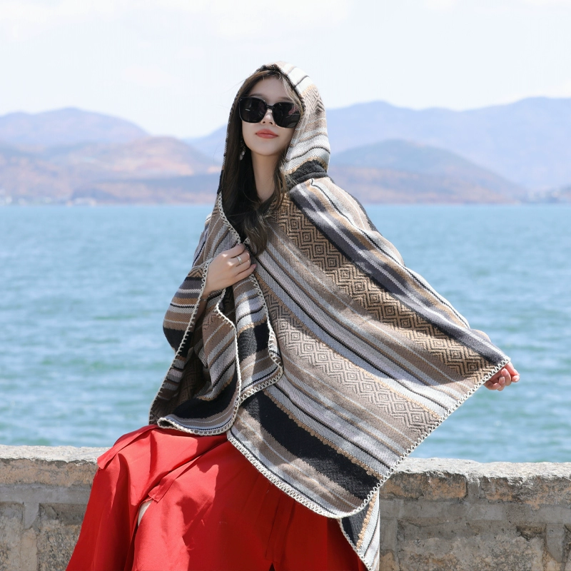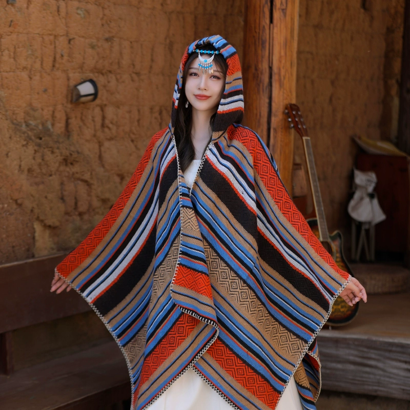 | nameOriginal | Ethnic style shawl cape hooded cardigan to wear as an outer layer in Xinjiang, Tibet, Qinghai, Chaka Salt Lake, travel and photoshoot, to keep warm and thick |