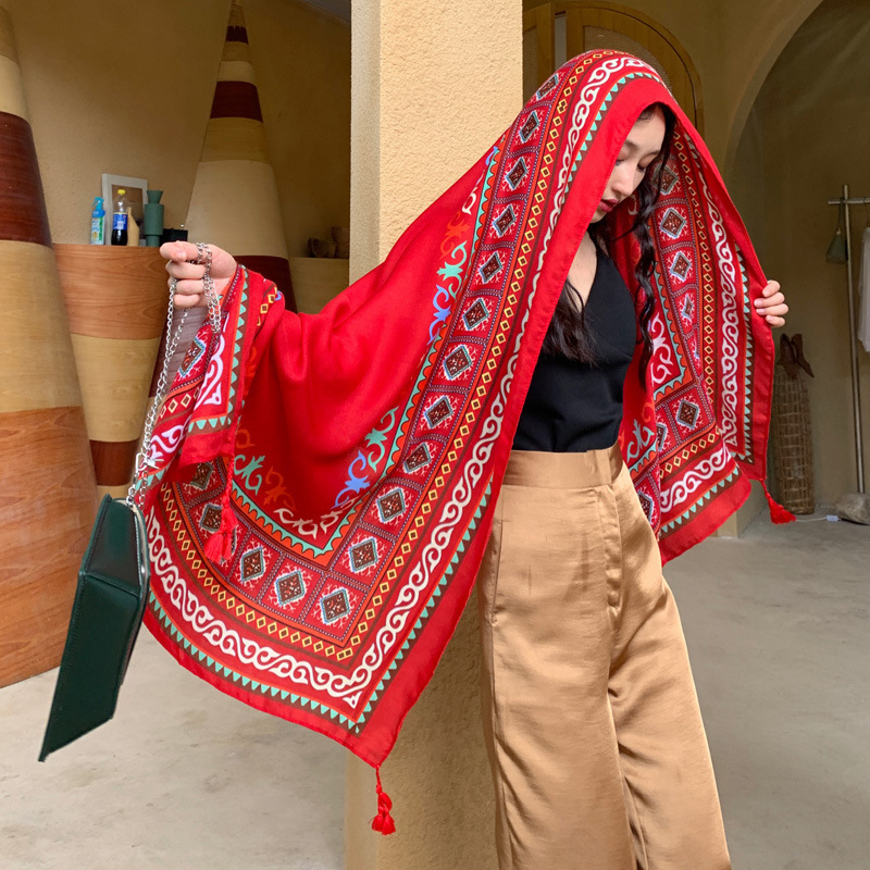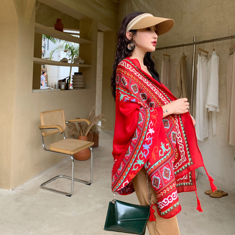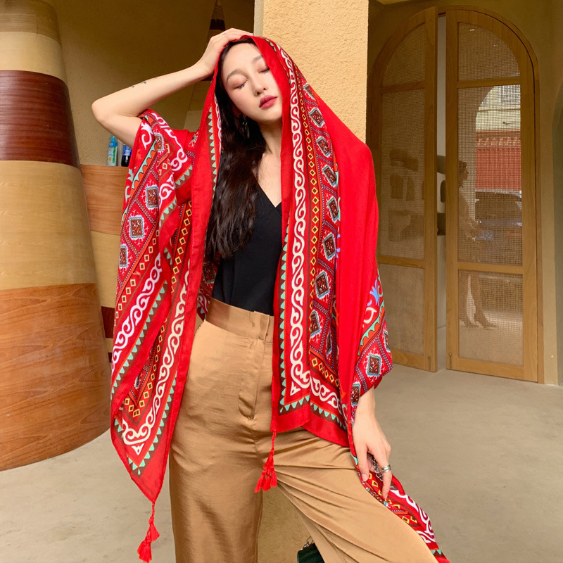 | nameOriginal | Ethnic style shawl scarf dual-use seaside sun protection beach scarf Red large scarf female desert travel photography summer |