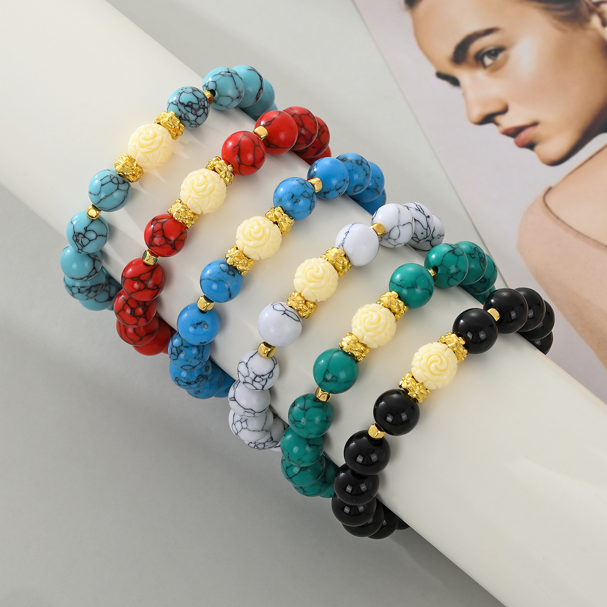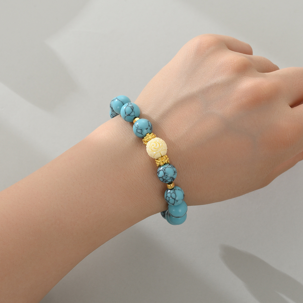 | nameOriginal | Ethnic Style Shell Flower Ball Turquoise Bracelet 10MM Classic Women's Beaded Bracelet Cross-border Accessories Factory Direct Sales |