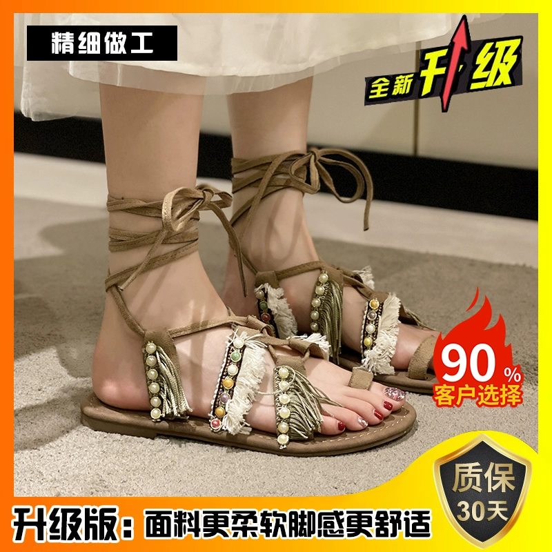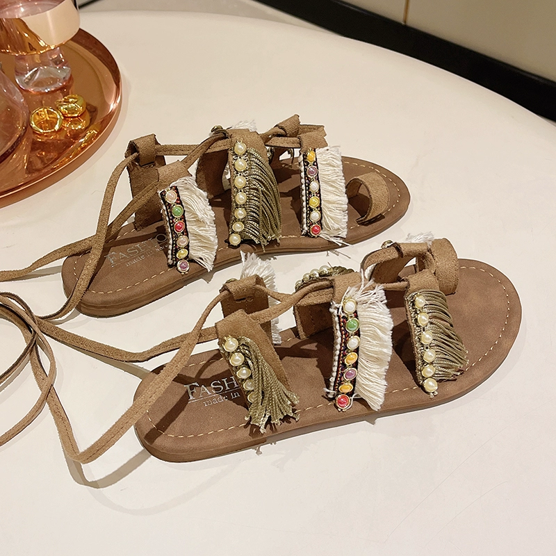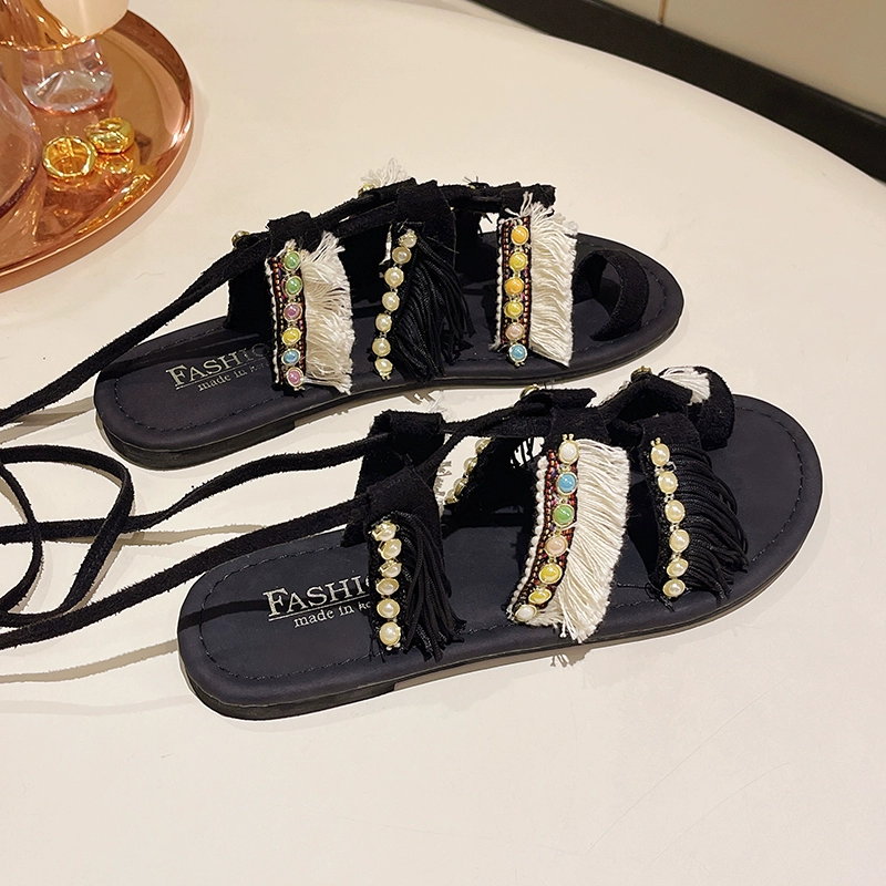 | nameOriginal | Ethnic style skirt strappy tassel thong sandals |