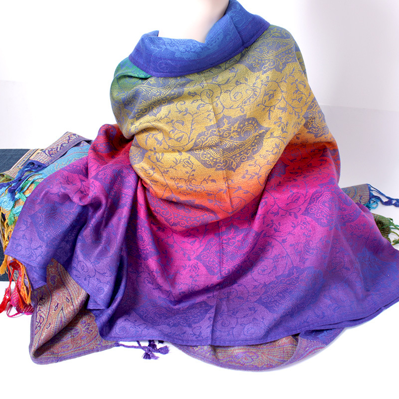 Ethnic Style Spring and Autumn Mix and Match Scarf Dual-use Jacquard Color Cashew Long Scarf Travel Photograph Shawl Women's Bag Turban
