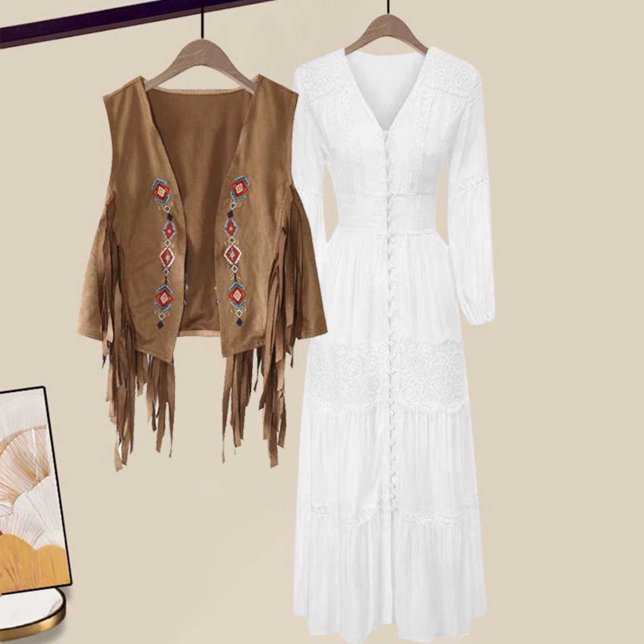 | nameOriginal | Ethnic style Vintage suede vest women's embroidered matching skirt coat Bohemian tassel cardigan |