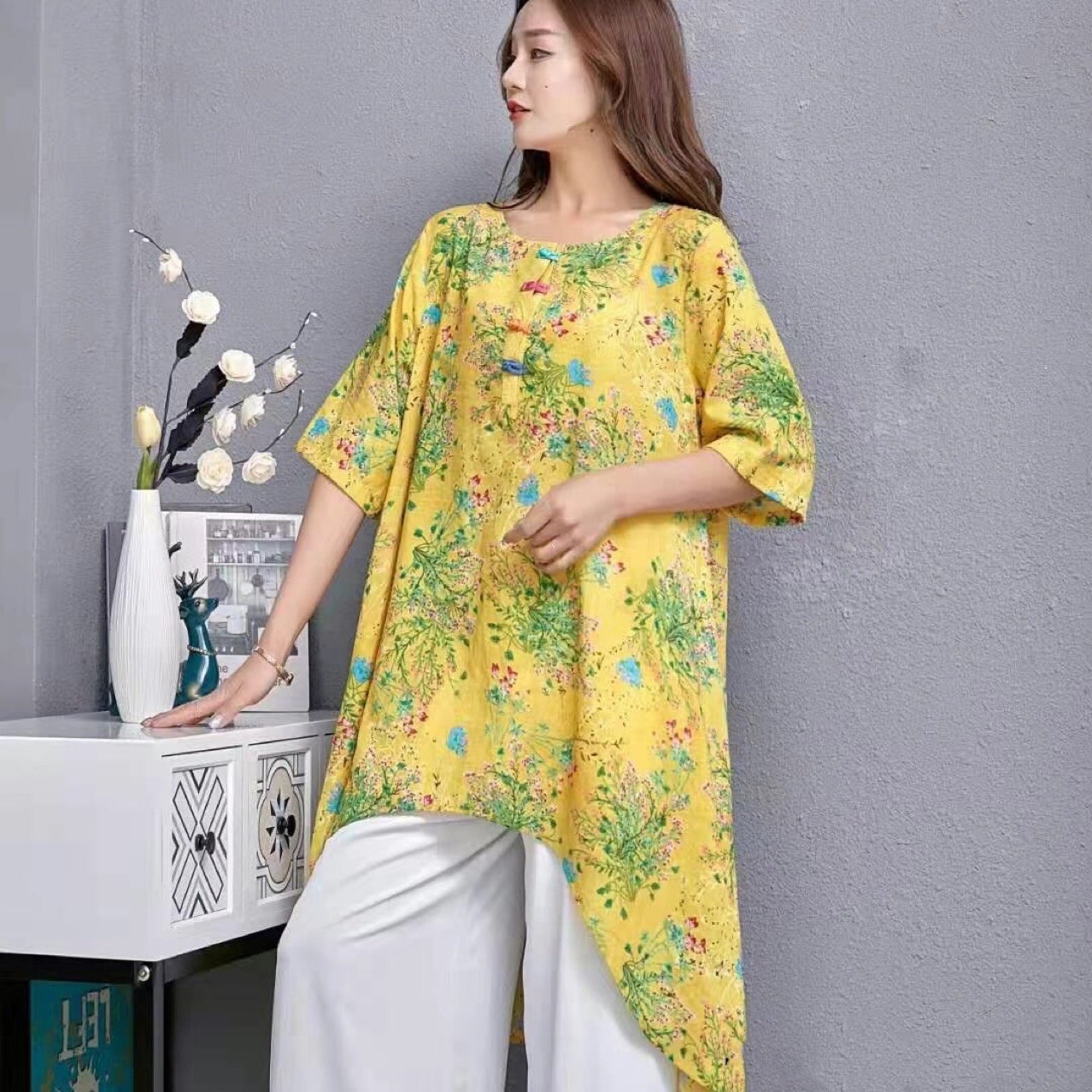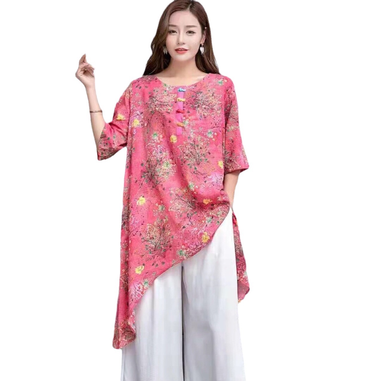 | nameOriginal | Ethnic Style Women's 2022 Summer New Cotton and Linen Printed Thin Women's Top Straight Leg Pants Casual Set |