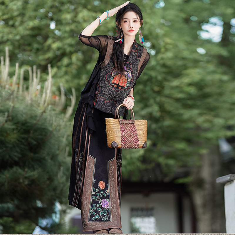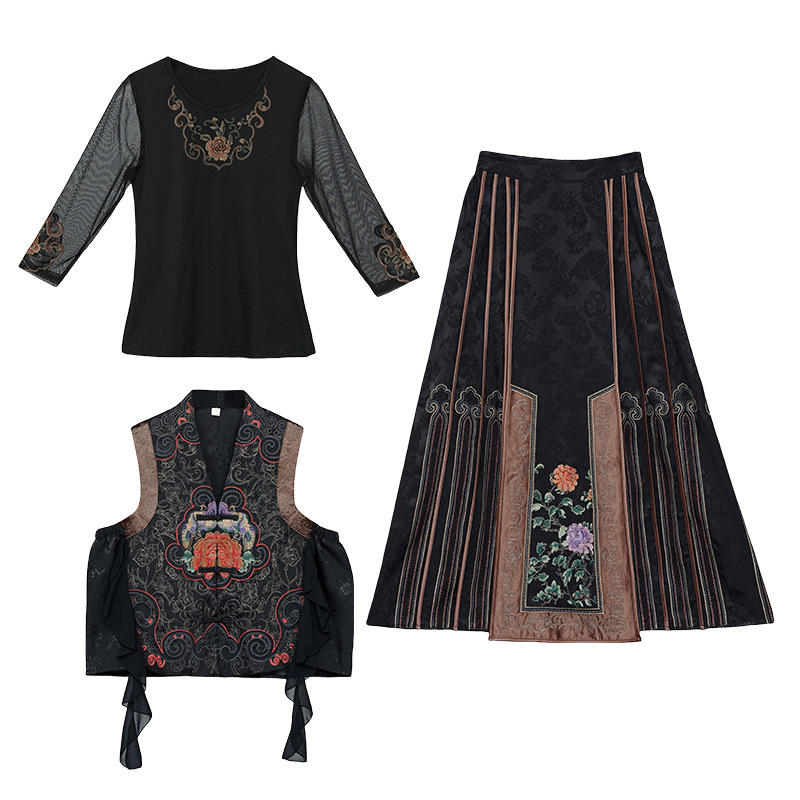 | nameOriginal | Ethnic Style Women's Clothing New Chinese Style Heavy Embroidery Modified Vest Black Lace Base Shirt Jacquard suit |
