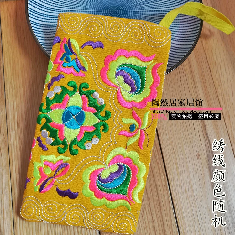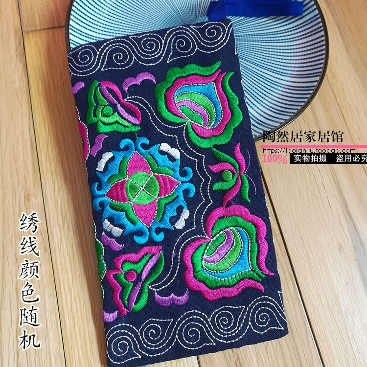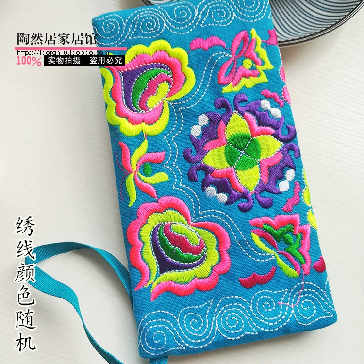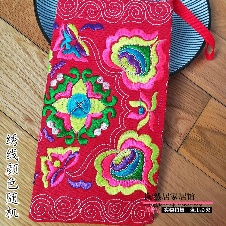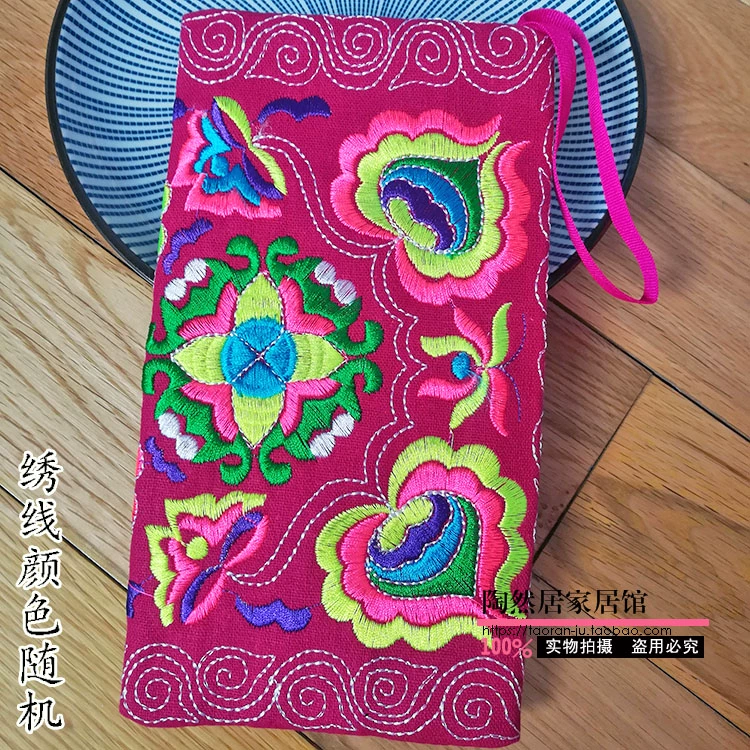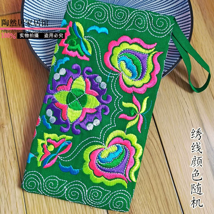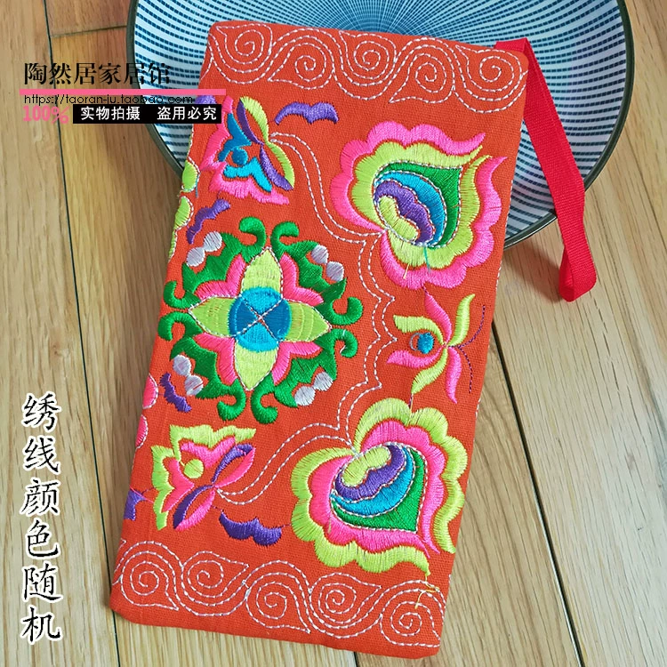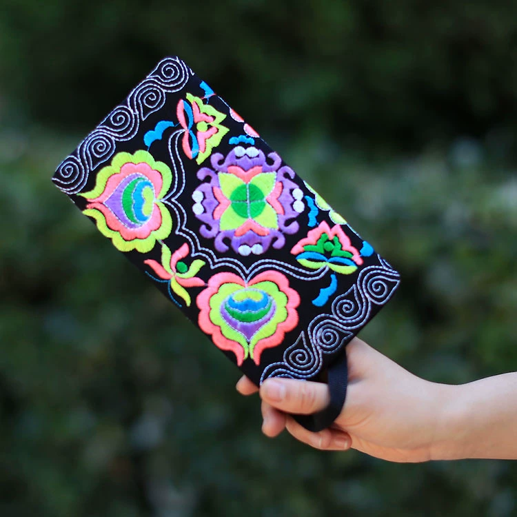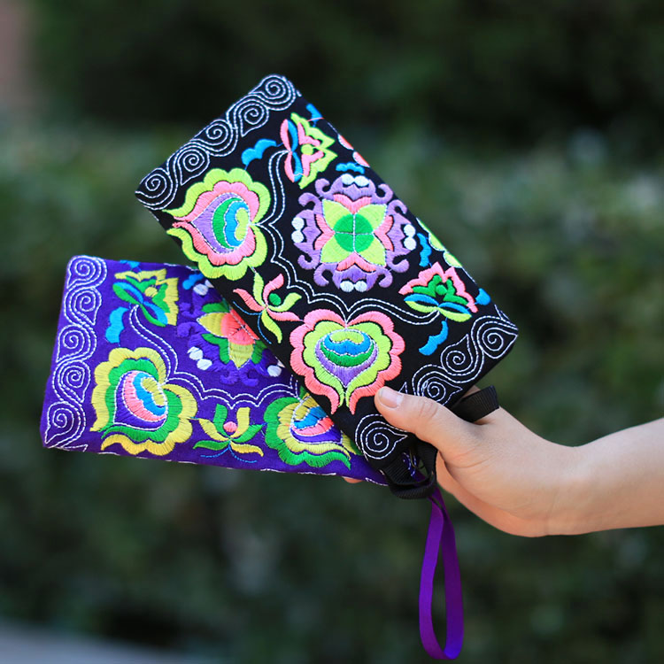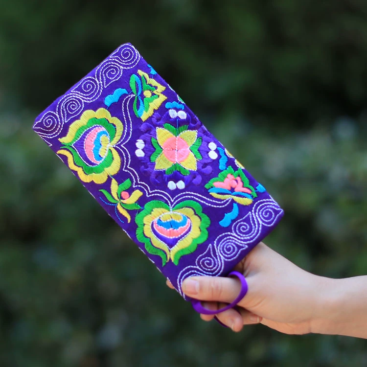 Ethnic style women's long embroidered wallet mobile phone bag Miao embroidery embroidered retro hand-held cloth bag to send girls gifts abroad